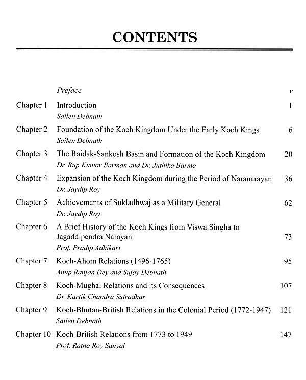 I am very much grateful to all the contributors for their efforts in accomplishing the task of providing their valuable articles, which are here in their original forms, devoid of changes, as chapters in this comprehensive history of the Koch Kingdom. With profound belief in and respect to the scholarship and erudition of the contributors, the editor's role has been an aberration off the conventional sense as he has restricted himself within the task of just collecting the articles and concatenating them in the string of chapters in thematic order. It is so done mainly to present the chapters in the contributors' very unique styles of language and variations of opinion as to the facts of the history of the Koch kingdom.