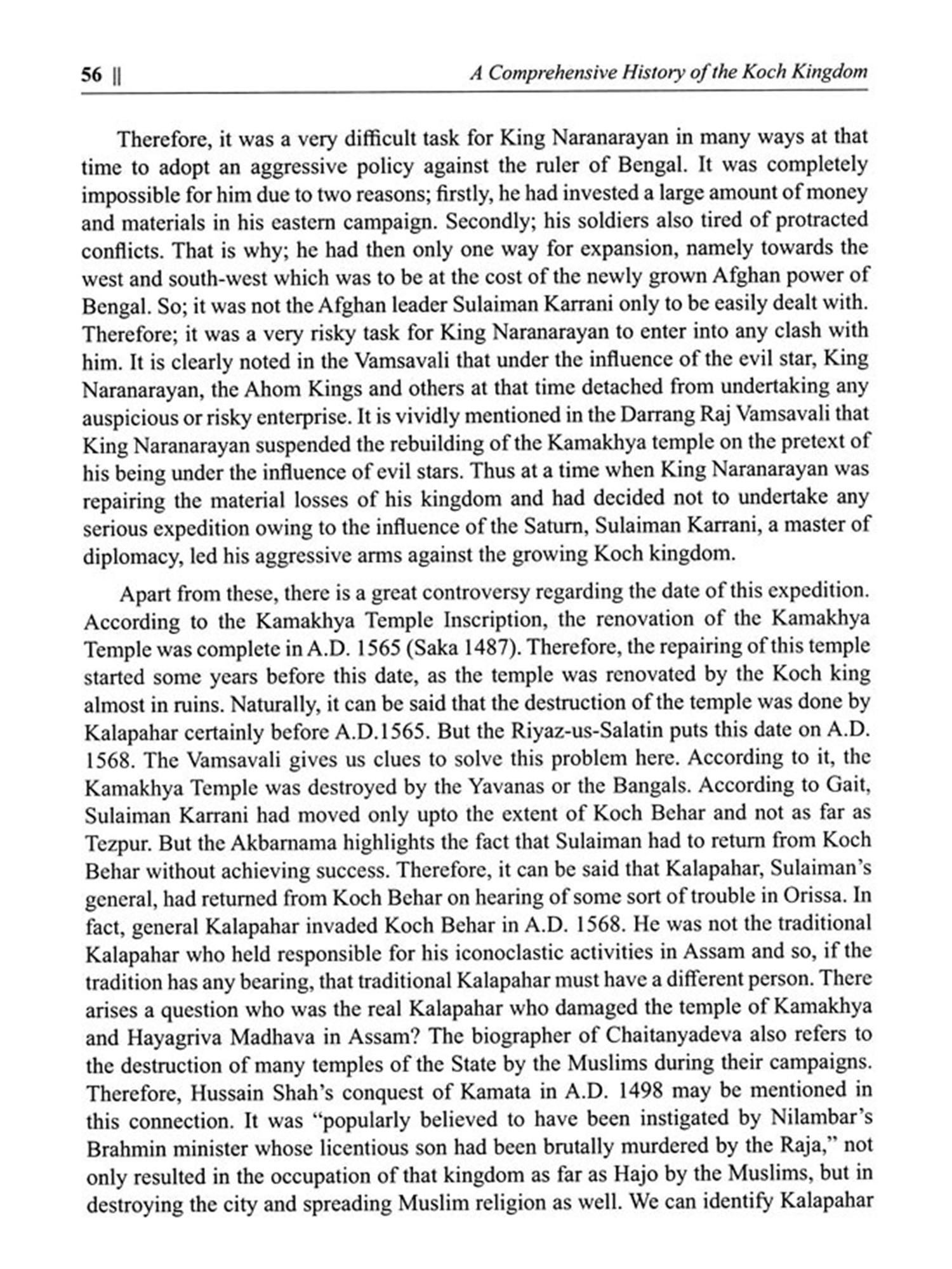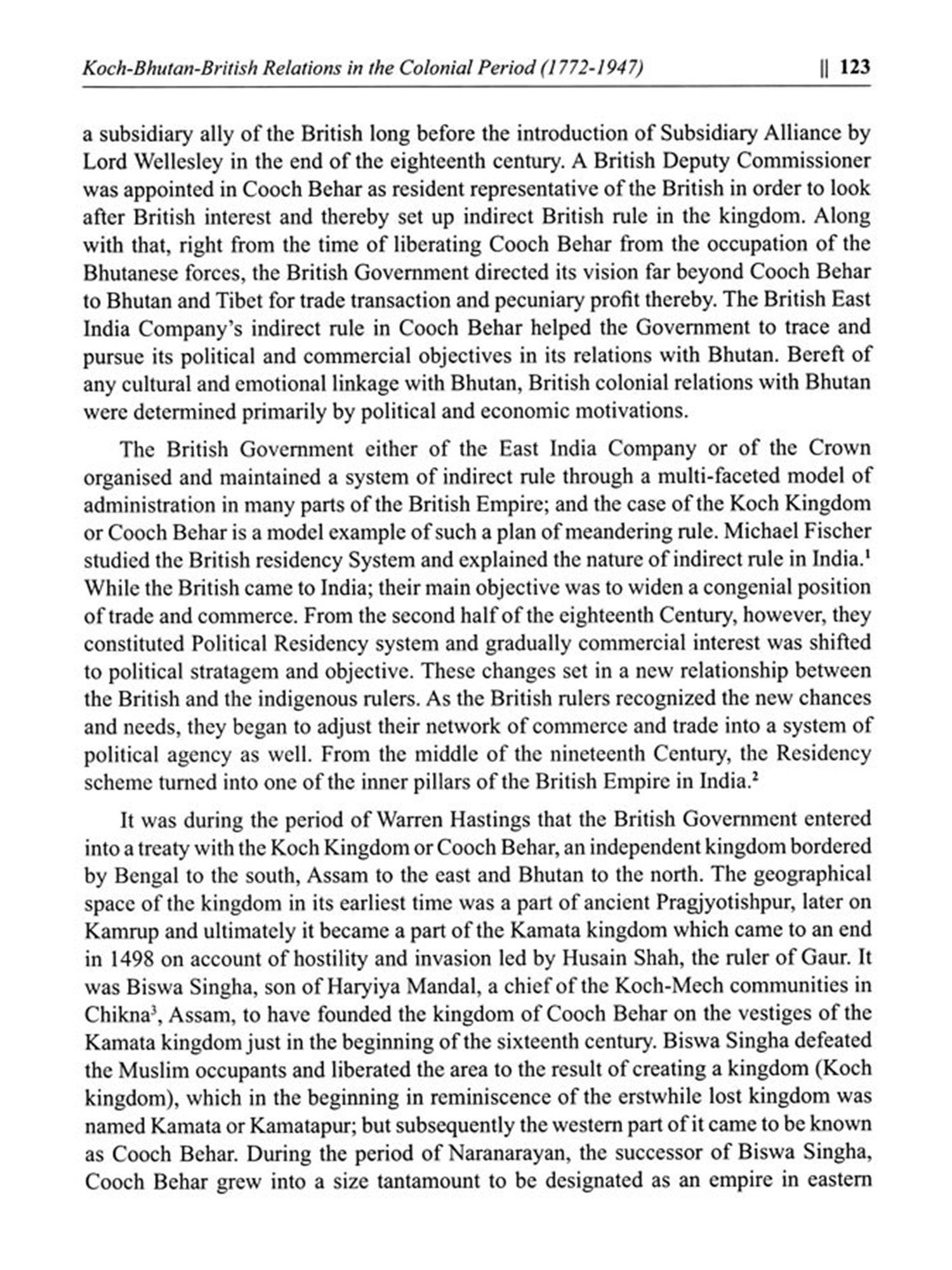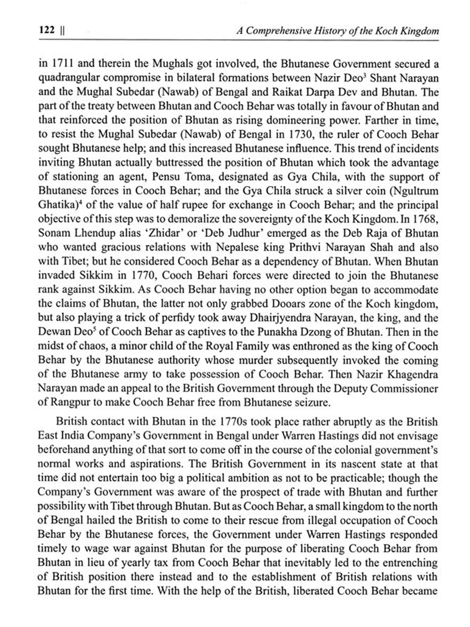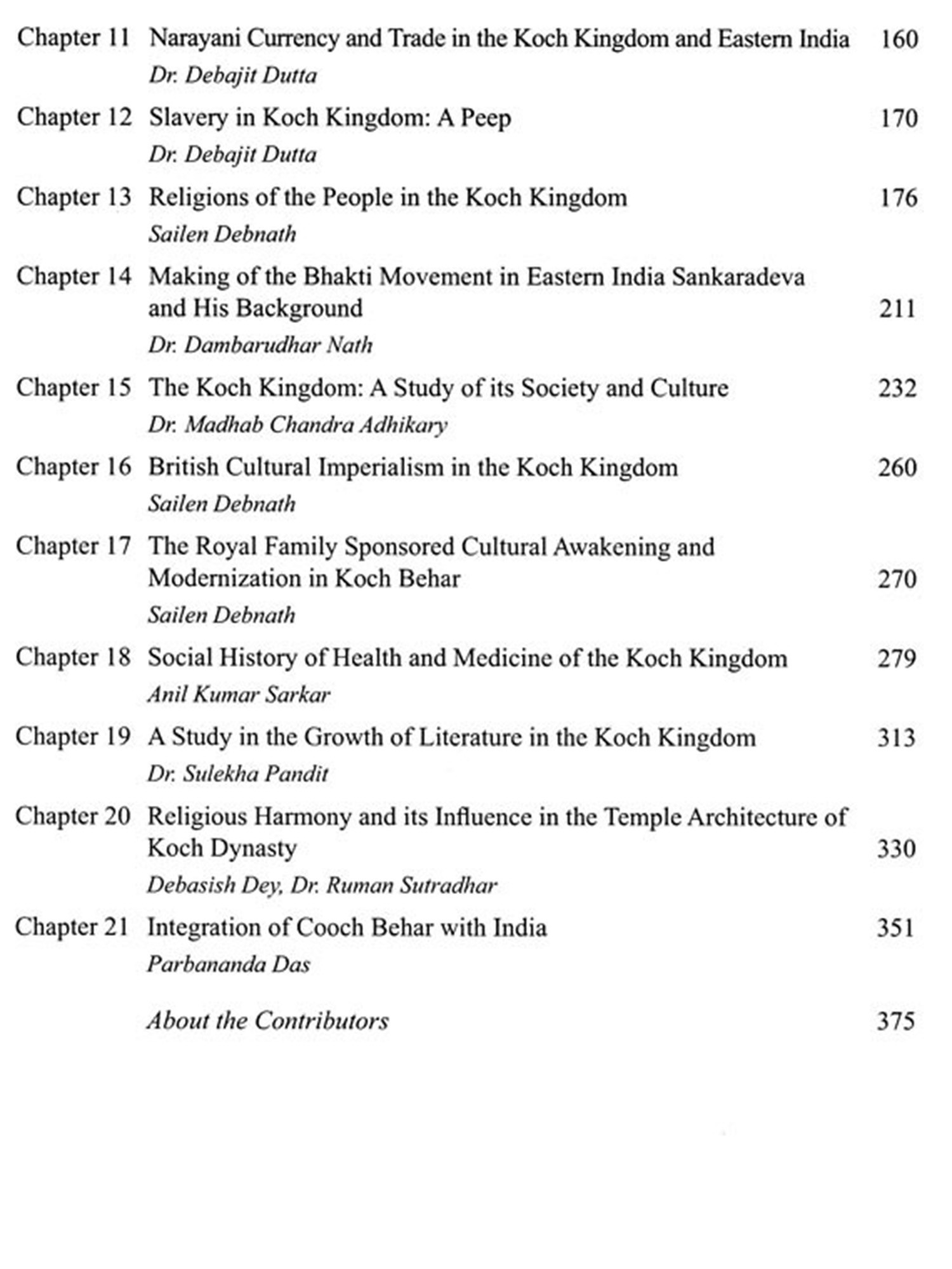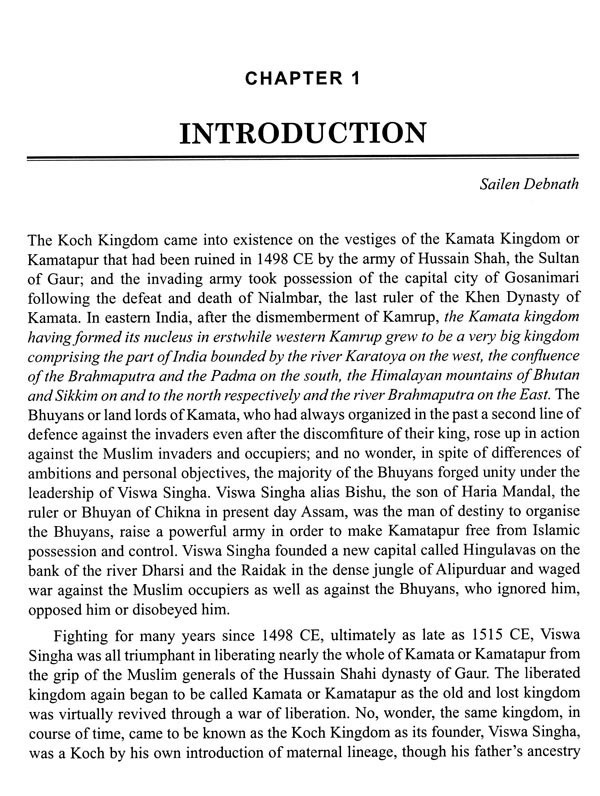 There have hitherto been only few books on the Koch Kingdom, but none of them covers the entire spectrum and different aspects of its history. Most of the few books, as available, are bereft of the most required researches to bring the unknown factors of the kingdom into light; therefore, such books are just copies of the preliminary writings on the history of the kingdom in the past. On the review of such lacunae in the historical studies about the Koch kingdom, there cropped up the plan of putting together the writings of the best scholars and connoisseurs in the field for the composition and edition of a book covering all the aspects-political, social, economic and cultural- of the evolution of the history of the Koch Kingdom. This book, per se, is an attempt to make the overall history of the kingdom apprehensible in the totality of its aspects to all the readers of history.