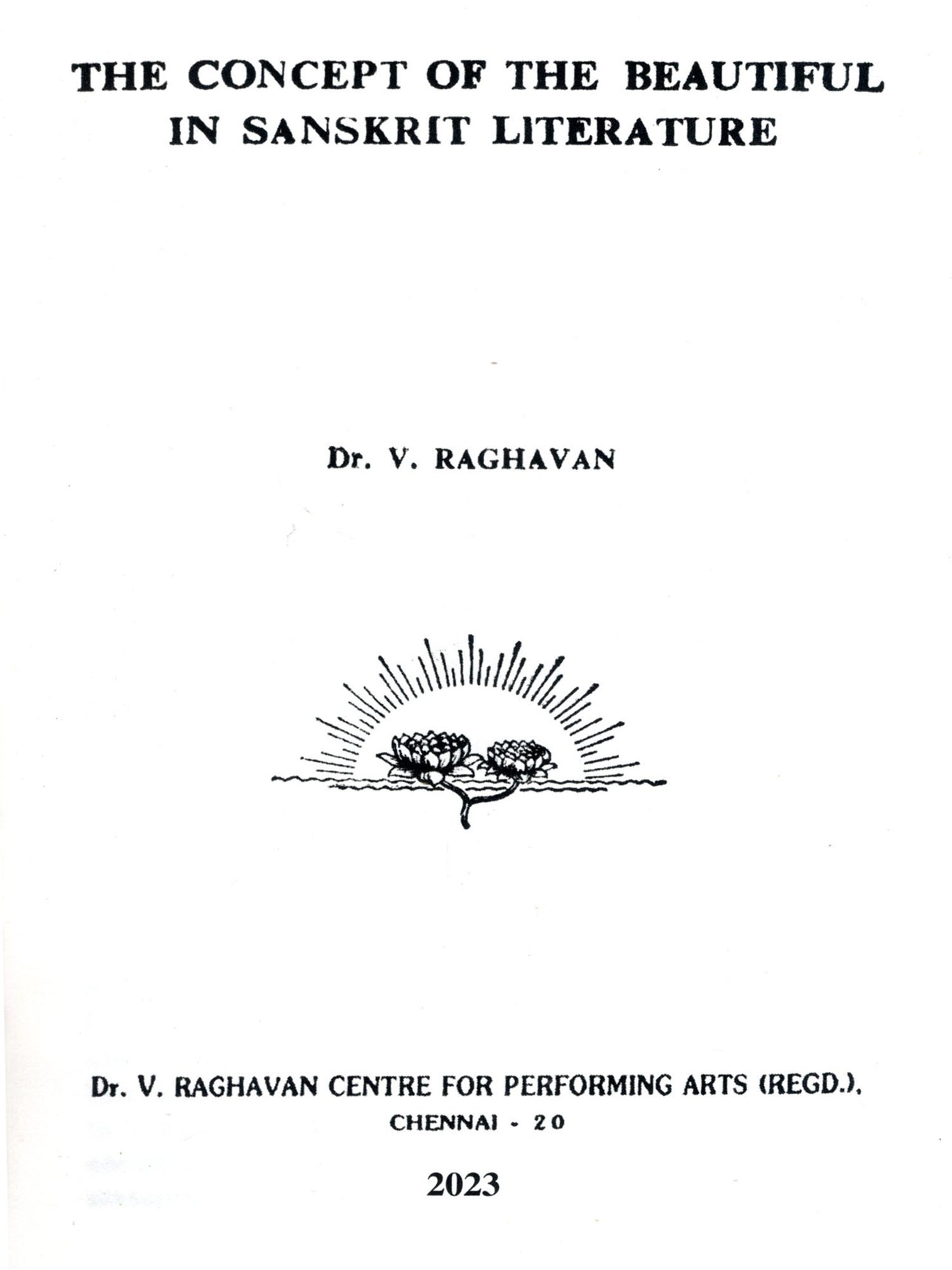 "The Concept of the Beautiful in Sanskrit Literature" was the subject of Dr. Raghavan's lectures at Madras and Berkeley, California in the sixties. The subject of Indian aesthetics is yet to be built up by research work in Gita, Națya, Silpa and Citra and coordinating it with the useful related material in Alańkāra. Sastra. Dr. Raghavan was a unique scholar equally proficient in all these fields. Hence his research as contained in these lectures is yet original, relevant and useful. Unfortunately, it could not be publi-shed during his lifetime. The Institute is thankful to the family of late Dr. V. Raghavan, especially Mrs. Sarada Raghavan, for making the draft of these lectures available for publication by the Institute.