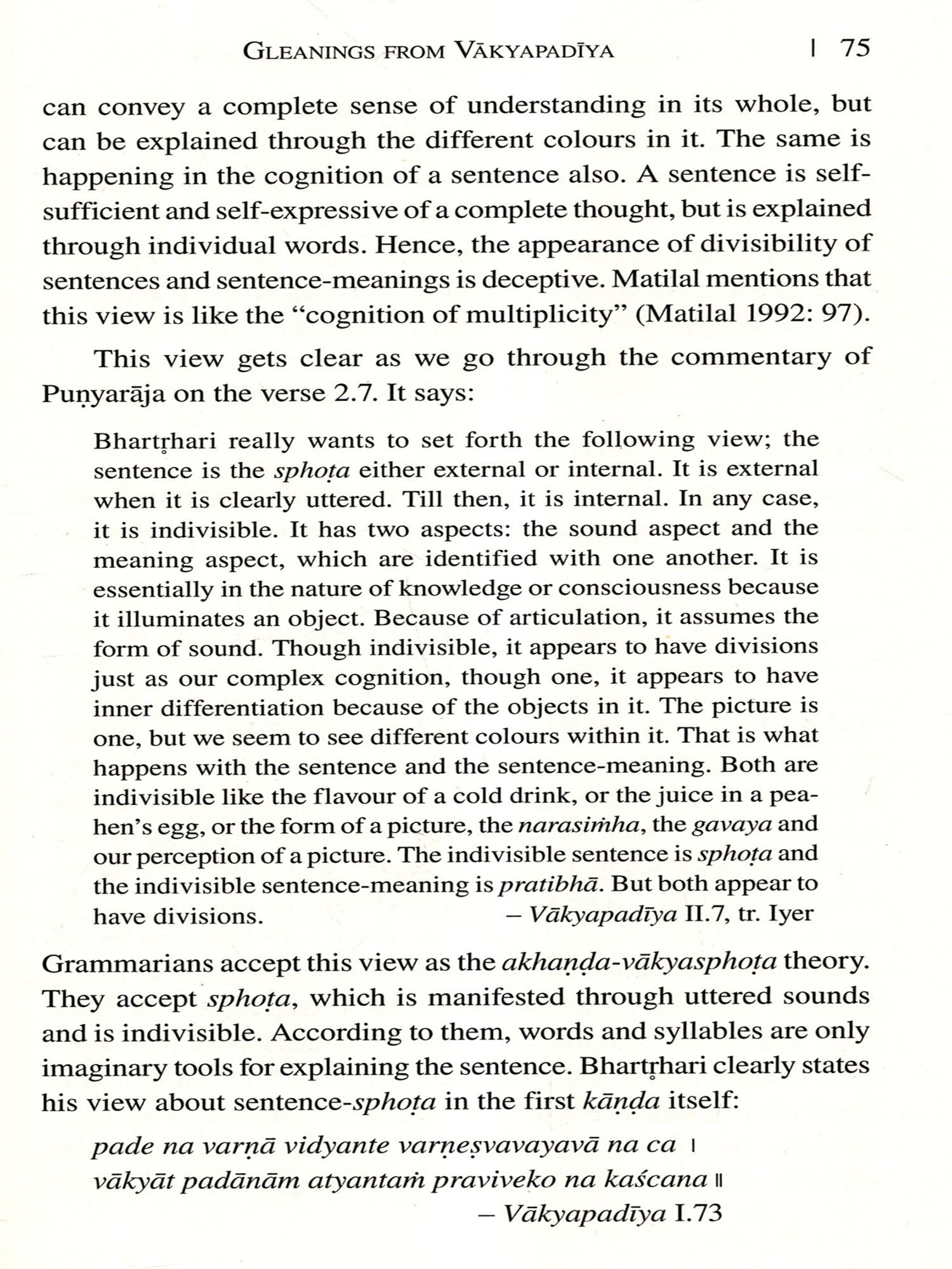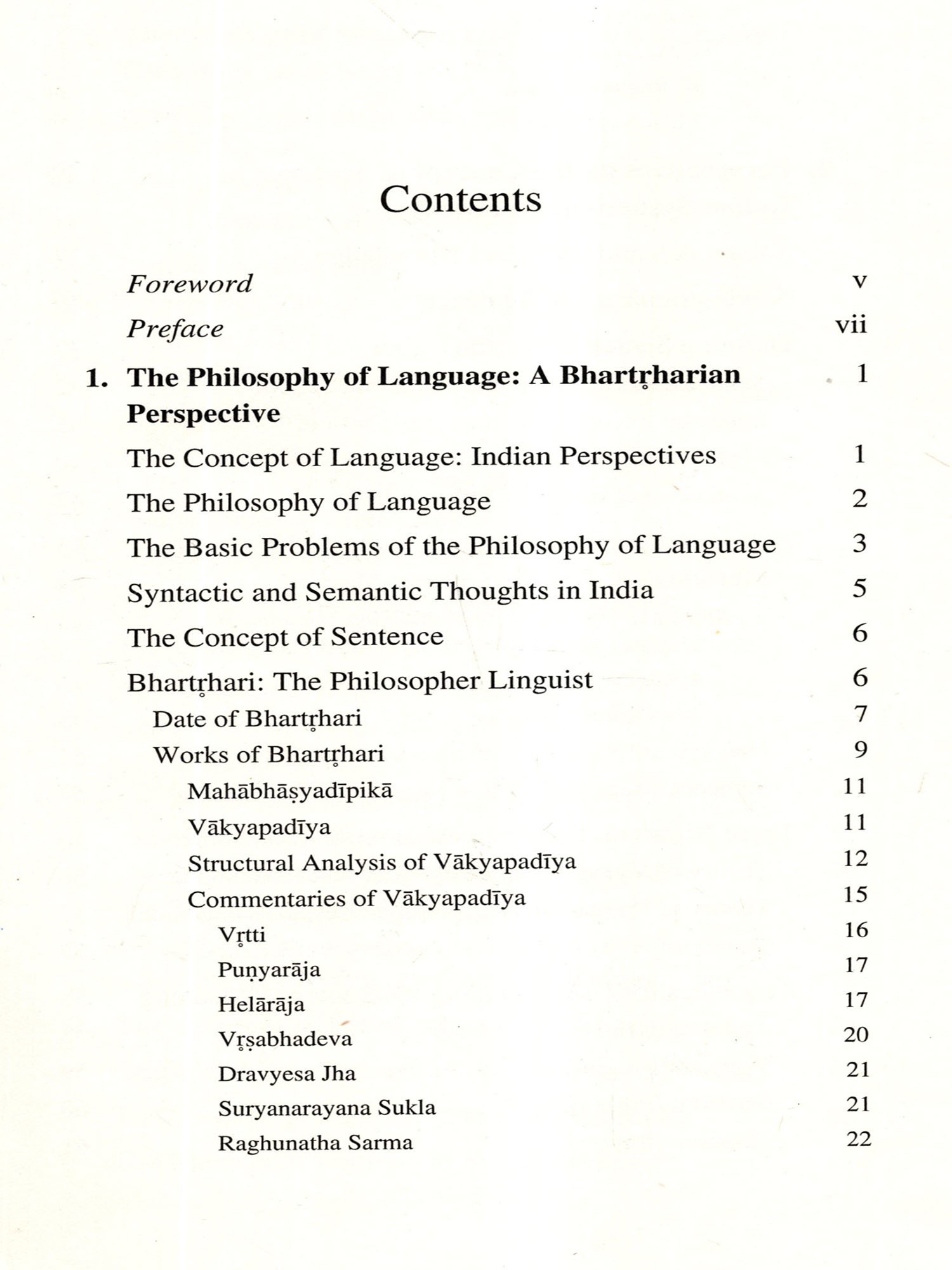 I am extremely happy to congratulate Dr Sarath P. Nath for bringing out a composition on the philosophy of Bharthari on sentence. Though the significance of the work can only be understood by those scholars who are well studied in Helārāja and Punyarāja, it will remain an asset to the field of grammatical deliberations.