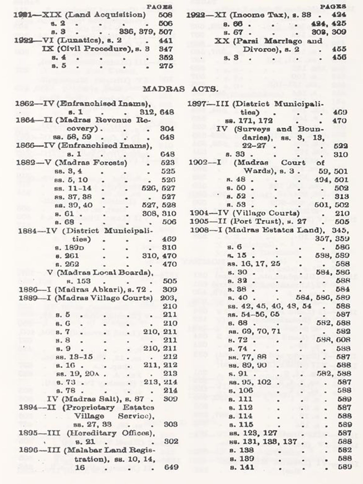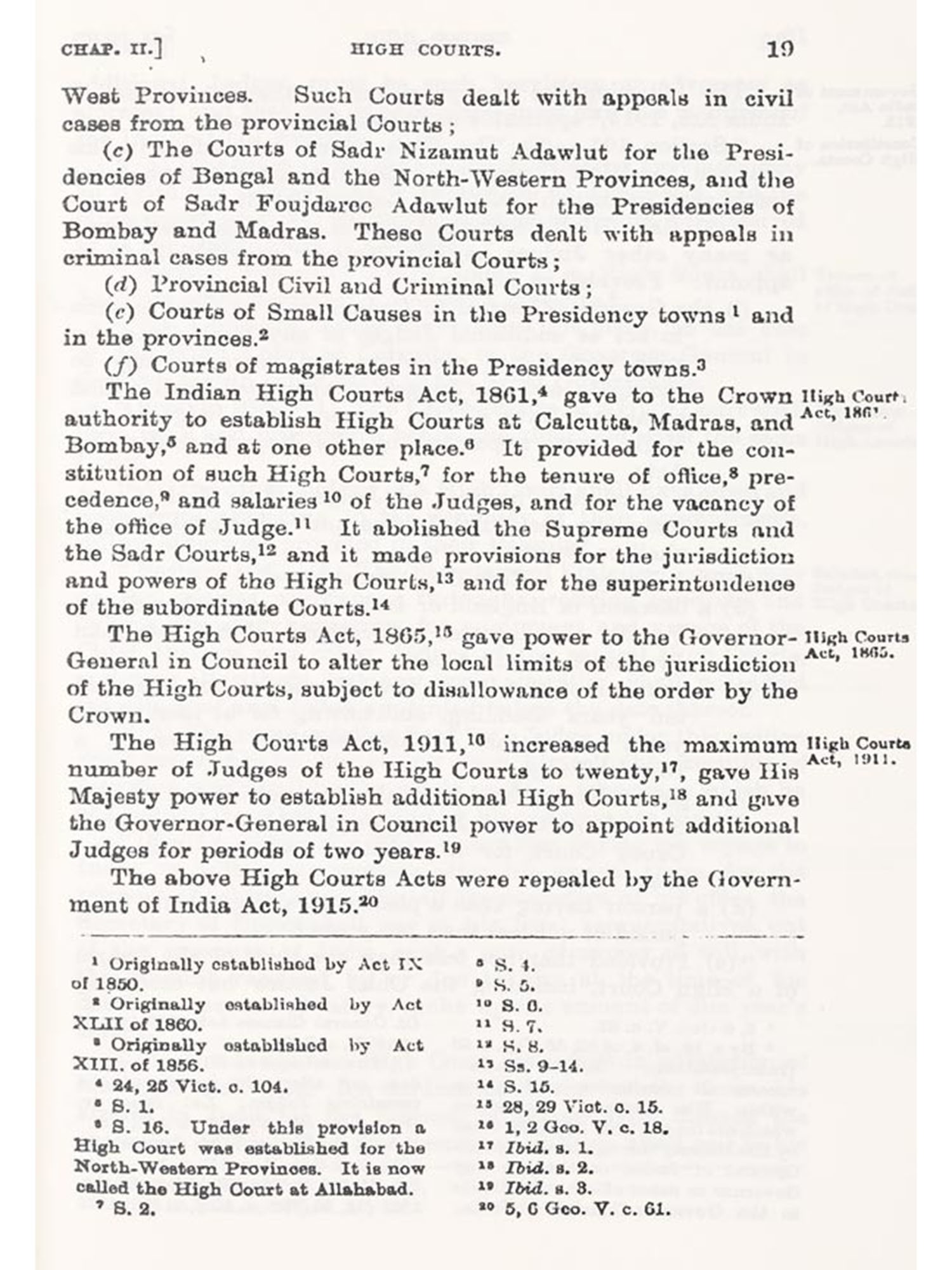 I have endeavoured to make the list as complete as possible, and in addition to the jurisdiction given to the High Courts, the Courts in the several Provinces, and the general jurisdiction of Civil Courts, I have dealt with the Acts which give special powers to the Courts, and also with special tribunals.