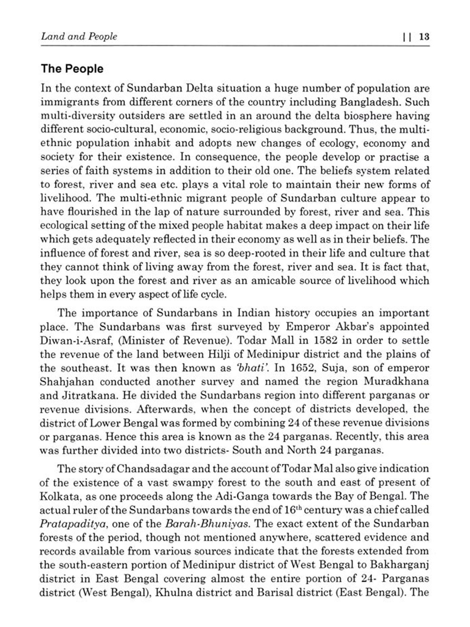 This Book is reflecting a hazardous Bio-sphere Delta heritage scenario. The focus of the study is to understand the present situation of the Indian side of Sundarban forest region. Over a period of time, a huge number of ethnic groups from different socio-economic backgrounds migrated here and inhabited in the delta region for their livelihood. Thus, the Delta lost her carrying capacity i.e. an inequality in the land-men-ratio took place. The word "Contact and Conflict" defined the survival strategy of the Delta population. To meet the subsistence needs, the people got dependent on both terrestrial and aquatic natural resources. This research work tries to find out the background of carrying capacity, causes and causality. The volume provides the inside overall view of the Sundarbans Delta. For the researchers, students and administrators, this study would provide a clear view of the region and this book would hold immense value to the anthropologists and future developers. The preservation and conservation of the delta heritage for the future generation is our moral duty.