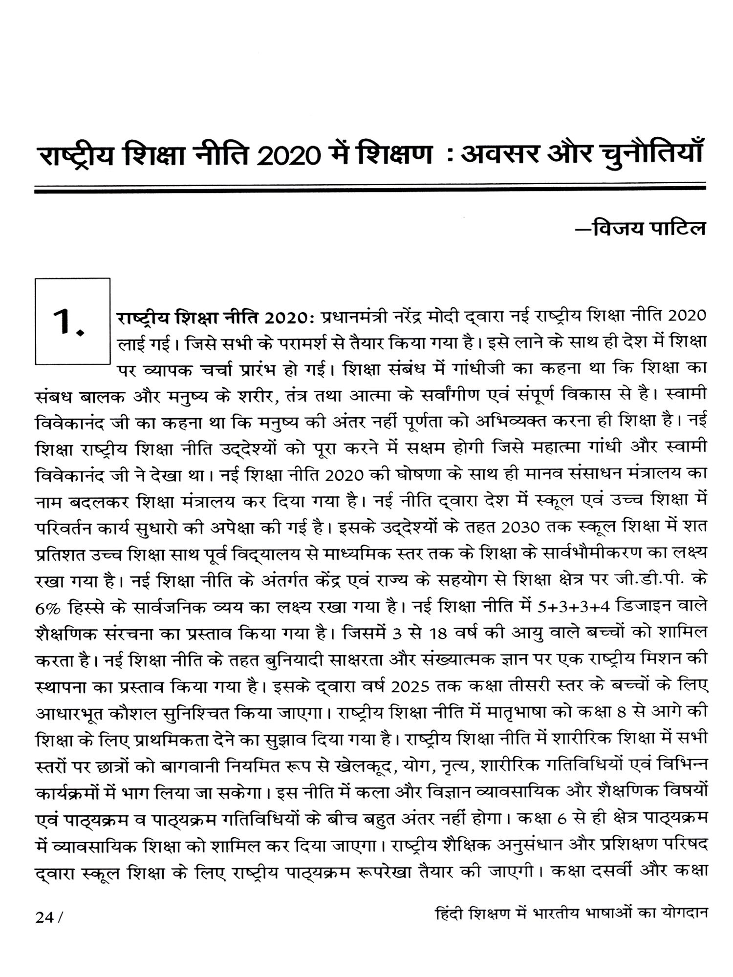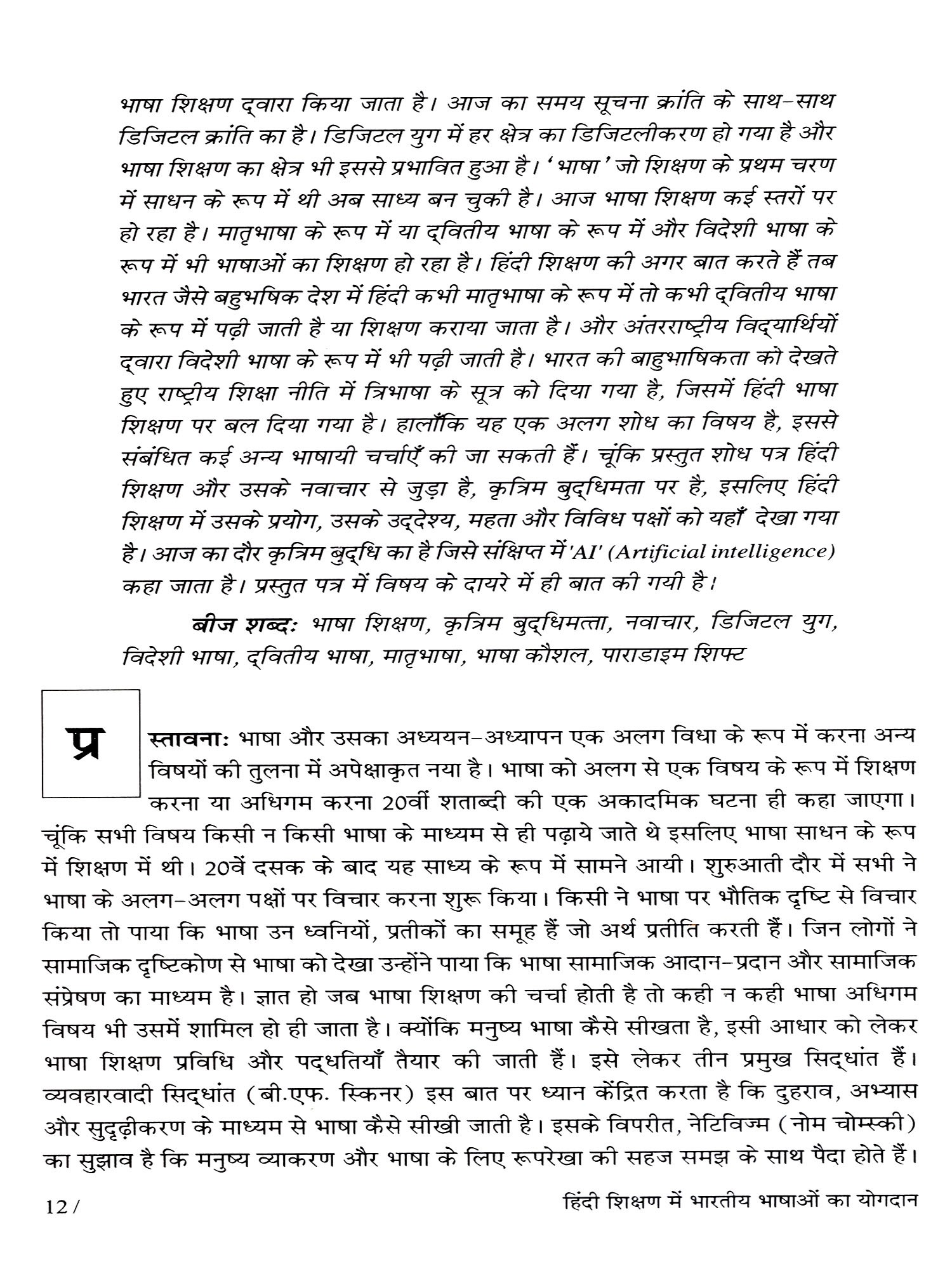 हिंदी शिक्षण में भारतीय भाषाओं का योगदान: The Contribution of Indian Languages ​​to Hindi Teaching with Special Reference to Northeast India