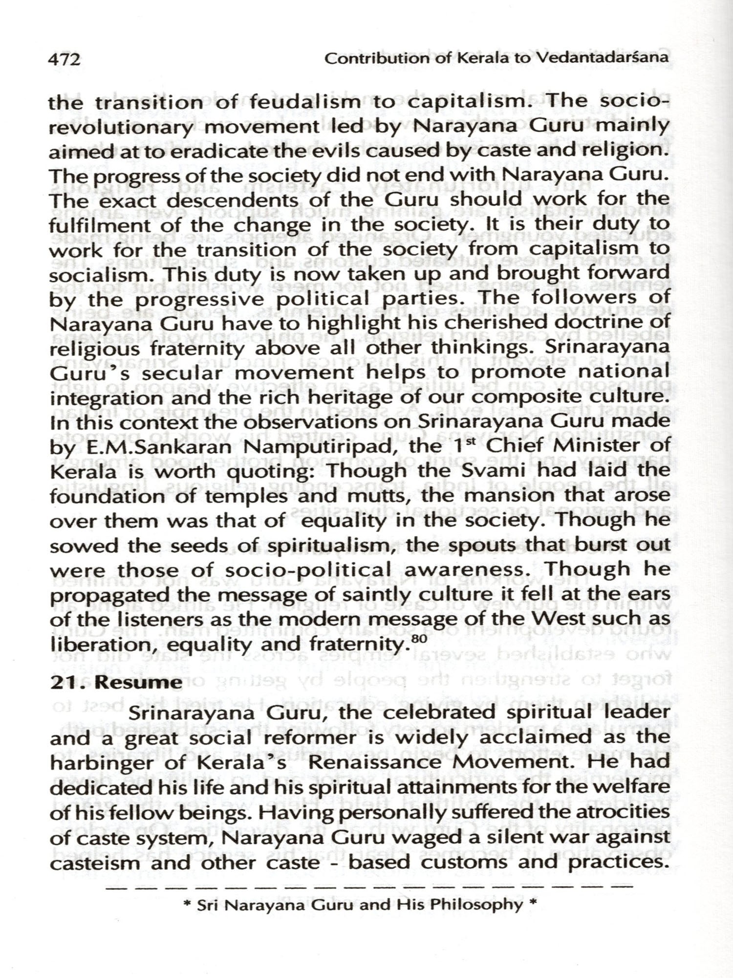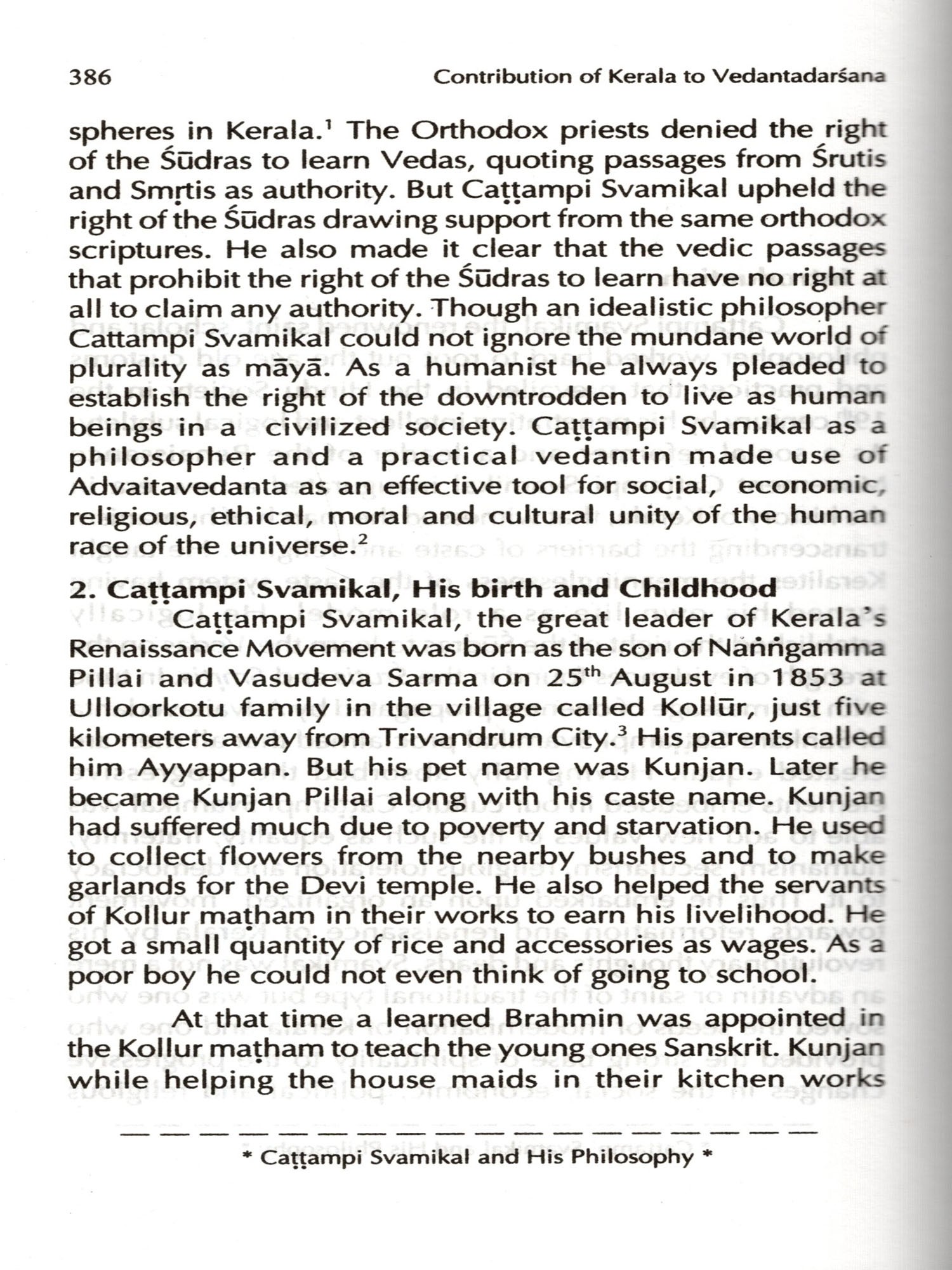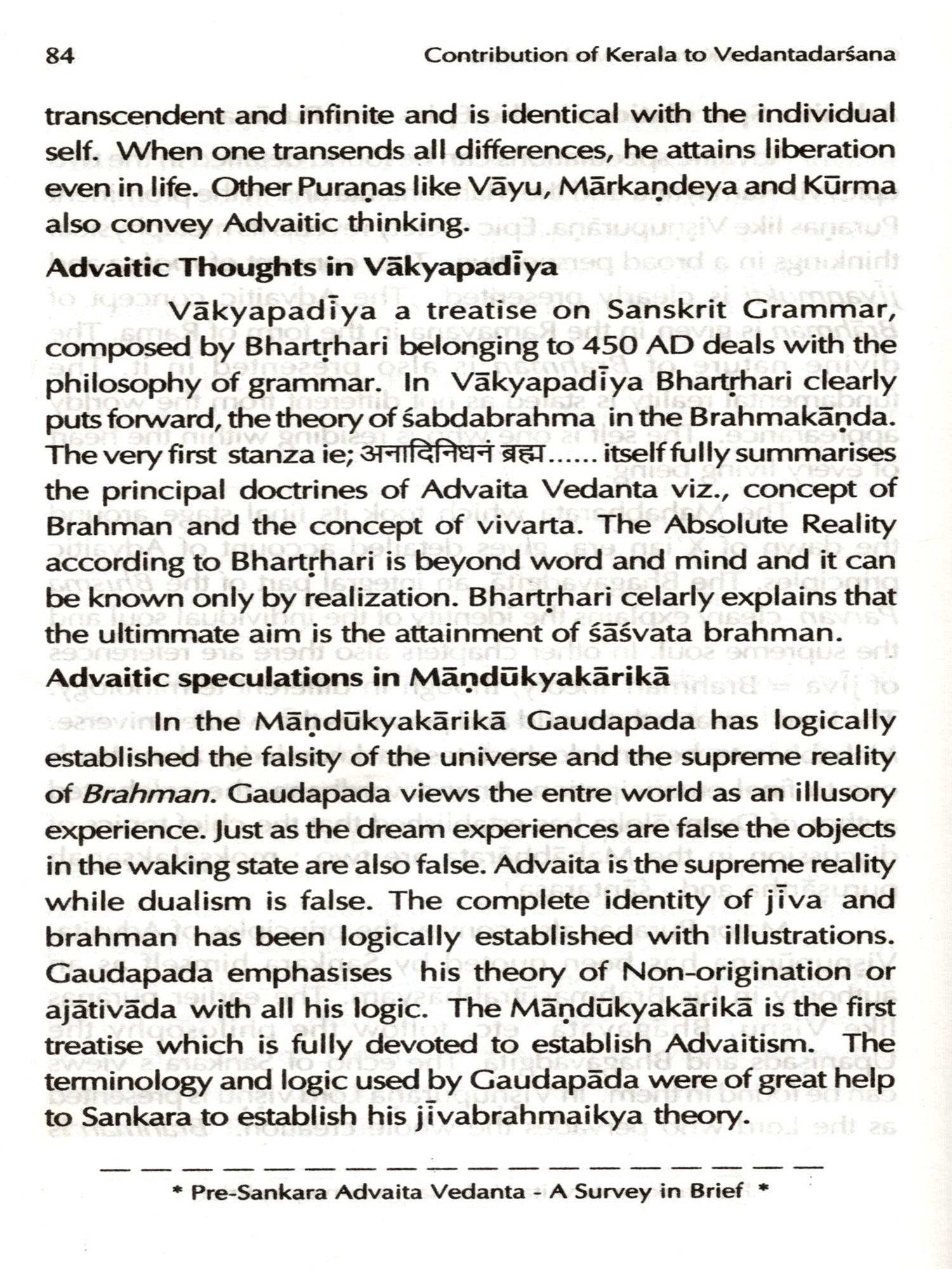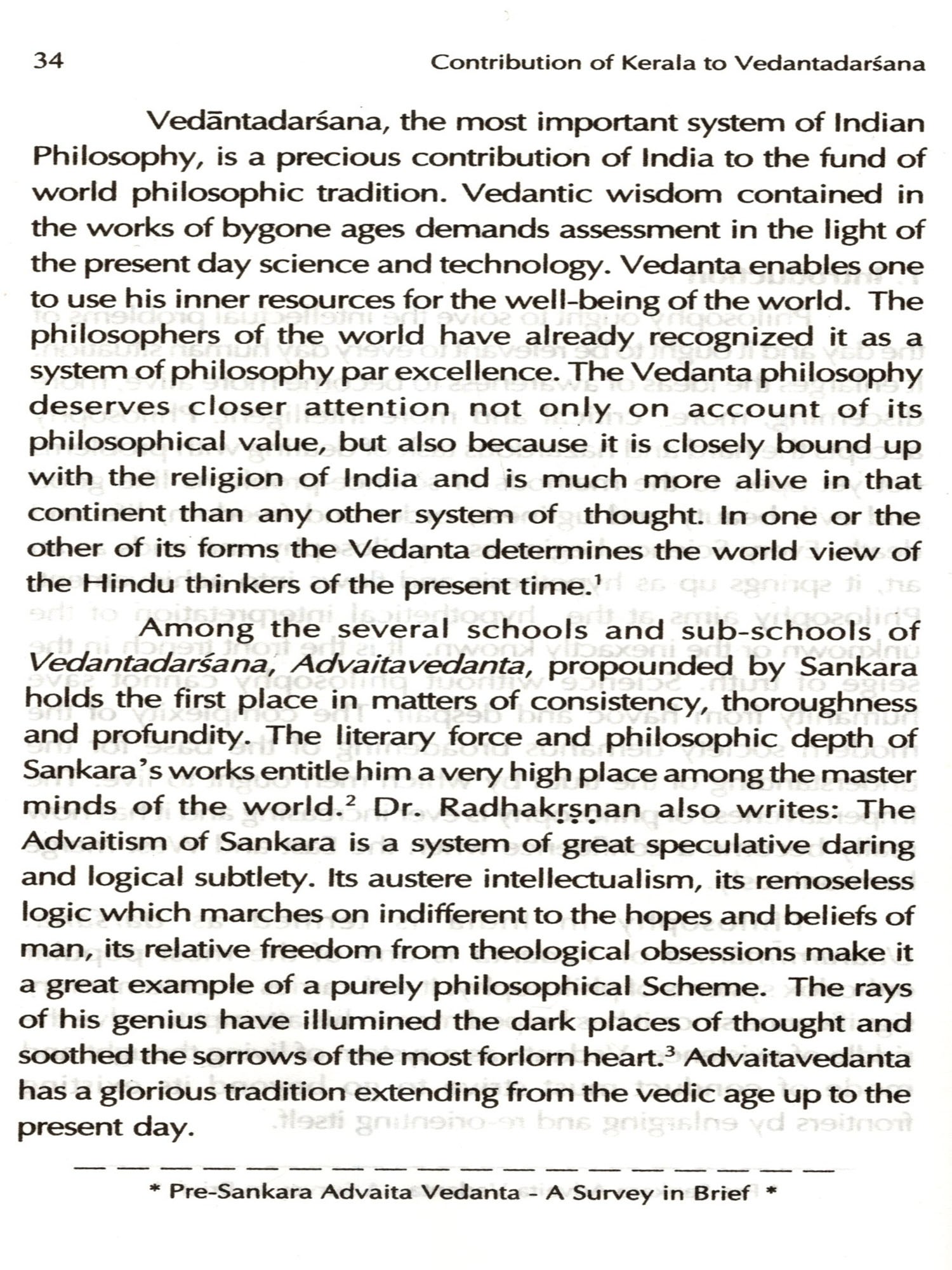 Contribution of Kerala to Vedantadarsana