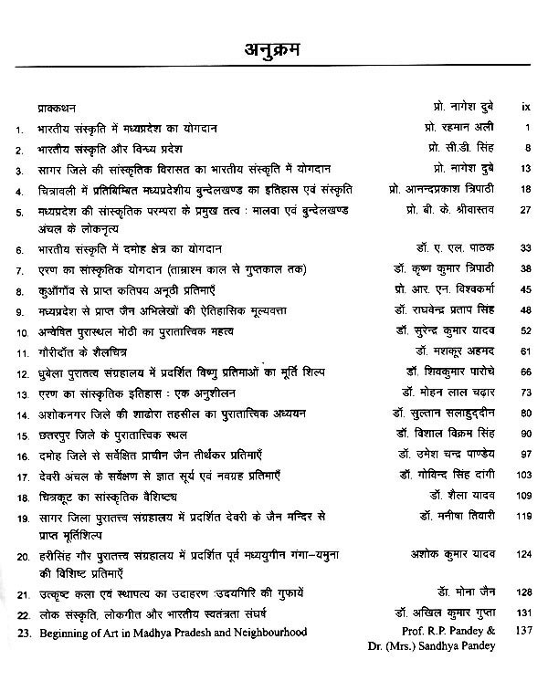 भारत के सुविख्यात पुरातत्त्ववेत्ता एवं प्राचीन भारतीय इतिहास, संस्कृति एवं पुरातत्व विभाग, डॉ. हरीसिंह गौर केंद्रीय विश्वविद्यालय, सागर (म. प्र.) के संस्थापक विभागाध्यक्ष स्वर्गीय के. डी. बाजपेयी के जन्म शताब्दी वर्ष में आयोजित राष्ट्रीय संगोष्ठी में प्रस्तुत शोध पत्रों के माध्यम से, भारतीय संस्कृति में मध्यप्रदेश के योगदान के विविध पक्षों को प्रस्तुत ग्रन्थ में प्रस्तुत किया गया है।