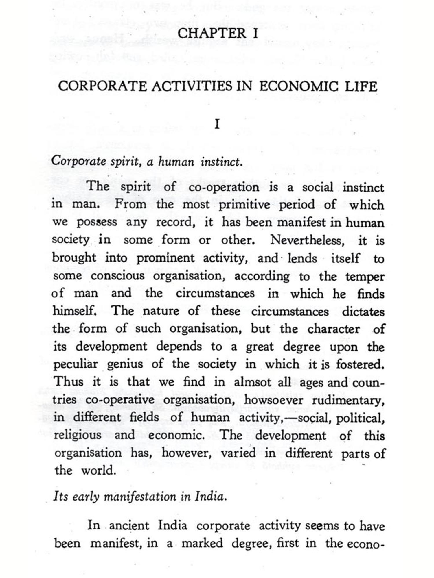 The spirit of co-operation has contributed more than anything else to the present highly developed stage of civilisation. The gigantic experiments in popular government and the huge economic organisations spreading over the whole world, such as we see to-day all around us, have made the modern age what it is. The corporate activity to which they owe their origin and the present high level of success, may therefore be justly looked upon as the distinctive element in the culture of the day. It is rightly believed that no nation that lacks in this essential element of culture can hope to keep pace with the progress of the world.