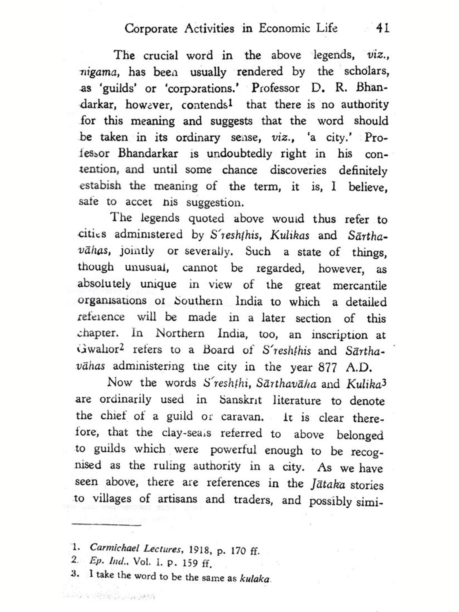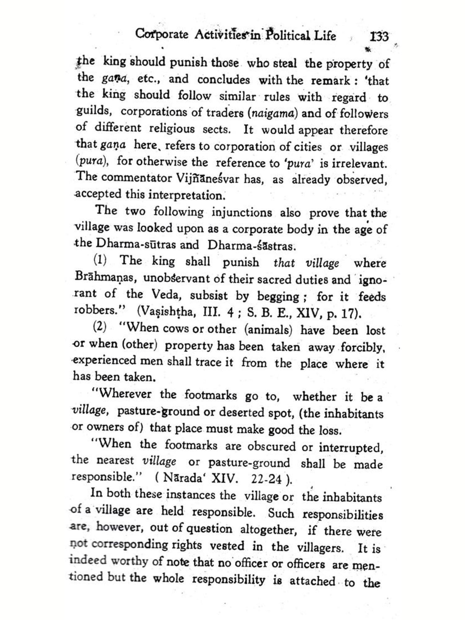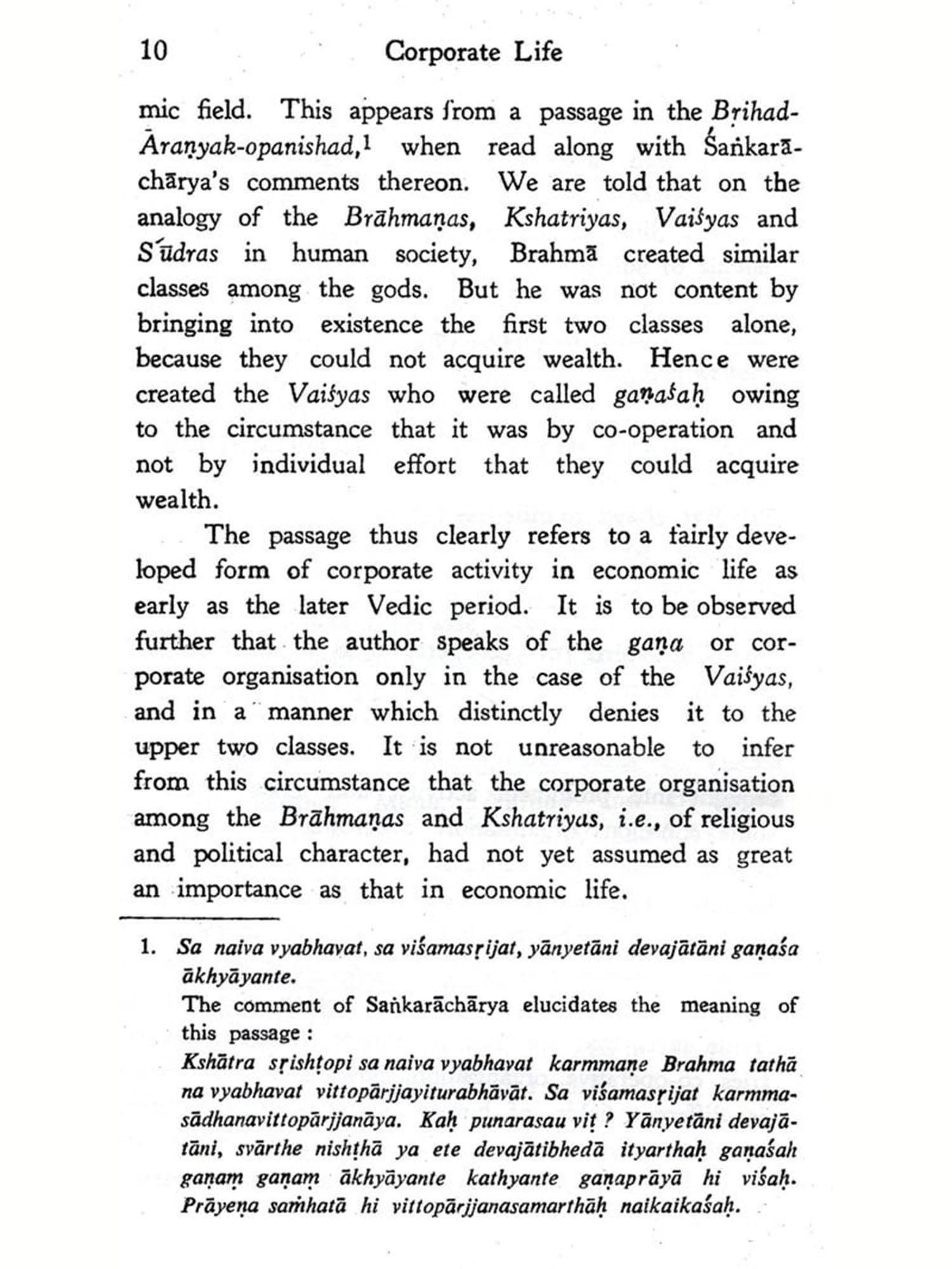 In consideration of this high importance of corporate life to a nation, I need scarcely offer any apology for the subject matter I have chosen. India at present is very backward in this particular aspect of culture, but the following pages are intended to show that things were quite different in the past. The spirit of co-operation was a marked feature in almost all fields of activity in ancient India and was manifest in social and religious as well as in political and economic life. The well-known 'jati (caste) and the Samgha (the community of the Buddhist monks) are the most notable products of this spirit in the first two spheres life. The same spirit, however, played an equally important part in the remaining ones, and its on the latter work by Jolly and Oldenberg in Z. D. M. G., Vols. 50 and 51. My indebtedness is, however, confined merely to the data they supplied on the subject, for my conclusions are different, and the treatment of the subject, as already indicated above, is entirely new. I have similarly used Fick's work, Die Sociale Gliederung Im Nordostlichen Indian Zu Buddha's Zeit, as a source of information for the Buddhist period, but I have also gathered fresh data, and the collection of Buddhist texts on the subject of 'caste,' included in the last chapter, may claim to be the most comprehensive of its kind. My theory of the origin of Brahmaņa caste may appear to be singular in some respects, and although I do not claim that it can be said to be a conclusive one, it appears to me to be the best, with regard to the evidence at present at our disposal. The acceptance or rejection of the theory does not, however, affect the general development of the subject, which is the more important point at issue. I have refrained from all discussions on the merits or defects of the caste system, as that would have involved me in one of the most controversial questions of the day which I have, as a rule, tried to avoid as far as possible. There can be hardly any doubt that the caste organisation assured the advantages of corporate life to its members, although it may be difficult to support the system as it exists at present. I have not offered any suggestions for its modification as I have avoided, on principle, all philosophical disquisitions throughout this work.