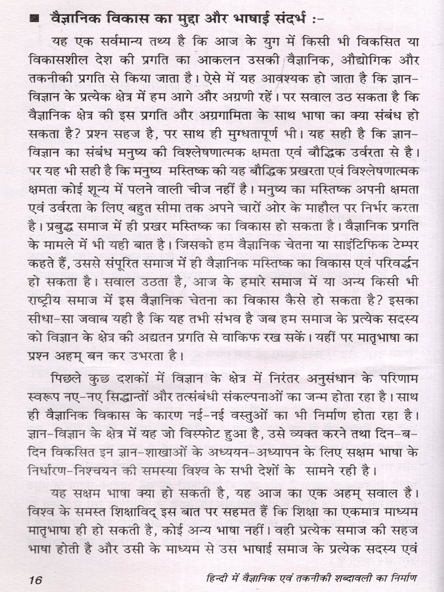 हिन्दी की विकास गंगा सतत प्रवाहमय बनी रहे, तथा उसके उपयोग को जन-जन के लिए उपयोगी बनाने की दिशा में पारिभाषिक शब्दावली में सरल एवं सुग्राह्य शब्दों का निर्धारण आवश्यक है। यह पुस्तक इसी दिशा में अपनी महत्त्वपूर्ण भूमिका का निर्वहन करती है। इसी अनुष्ठान में पत्रिका प्रकाशन की उत्कृष्ट प्रकाशन श्रृंखला में पुस्तक 'हिन्दी में वैज्ञानिक एवं तकनीकी शब्दावली का निर्माण' का प्रबुद्ध पाठक स्वागत करेंगे, ऐसा हमारा विश्वास है।
