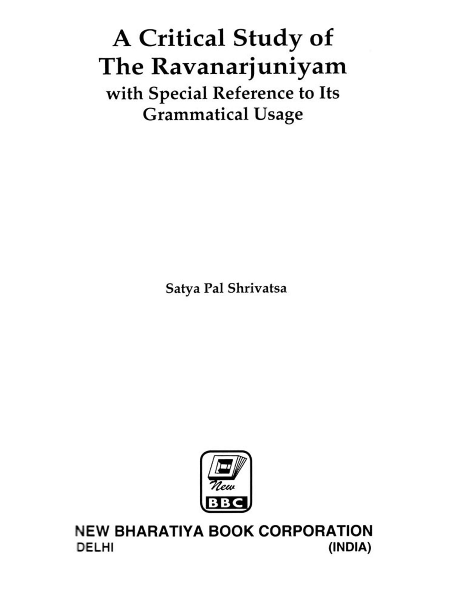 A Critical Study of the Ravanarjuniyam: With Special Reference to Its Grammatical Usage