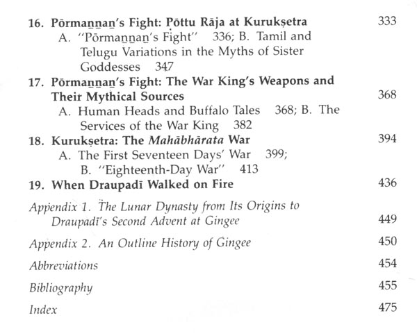 The regional and epic mythology of the South Indian Draupadi cult may at first sound a remote and forbidding note. The region referred to in my subtitle, the medieval kingdom of Gingee, is today little known and scantly studied. And the Indian epic which has Draupadi as its chief heroine is that literary hulk the Mahabharata, perhaps known by name, or even recallable as a familiar tale, but daunting in its true massiveness and complexity. However, this is not a study of obscure kingdoms and arcane epic symbolisms. It is an exploration, through the study of a singularly representative cult, of the inner dynamics of popular devotional Hinduism.