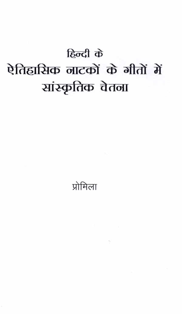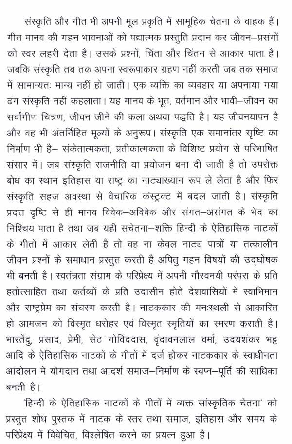 हिन्दी के ऐतिहासिक नाटकों के गीतों में सांस्कृतिक चेतना: Cultural Consciousness in the Songs of Hindi Historical Dramas
