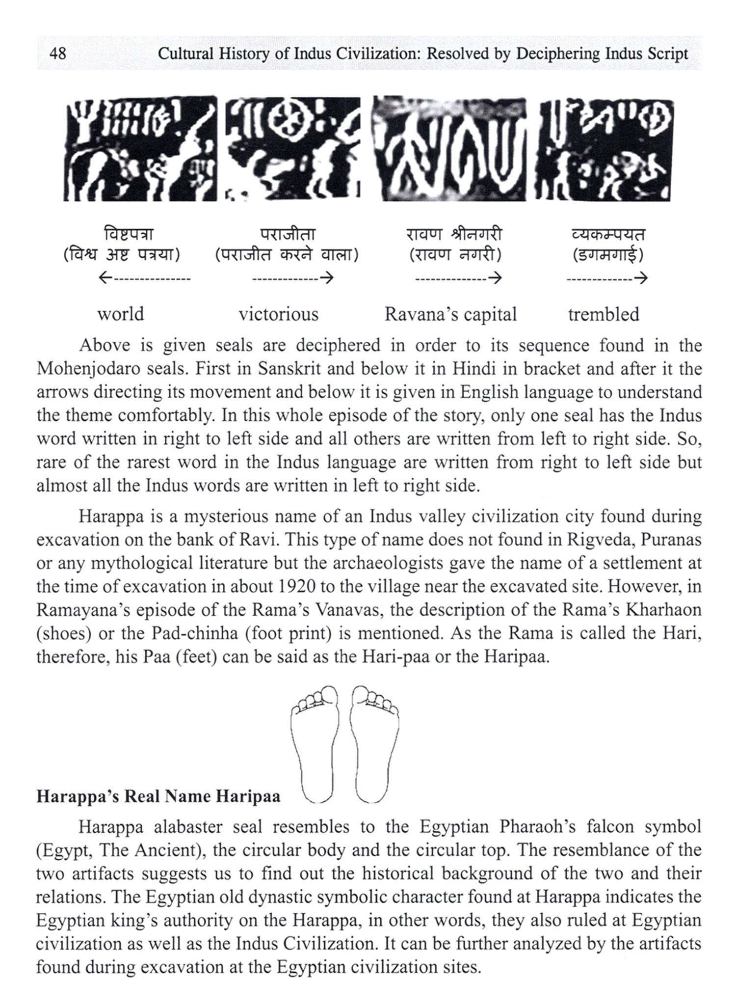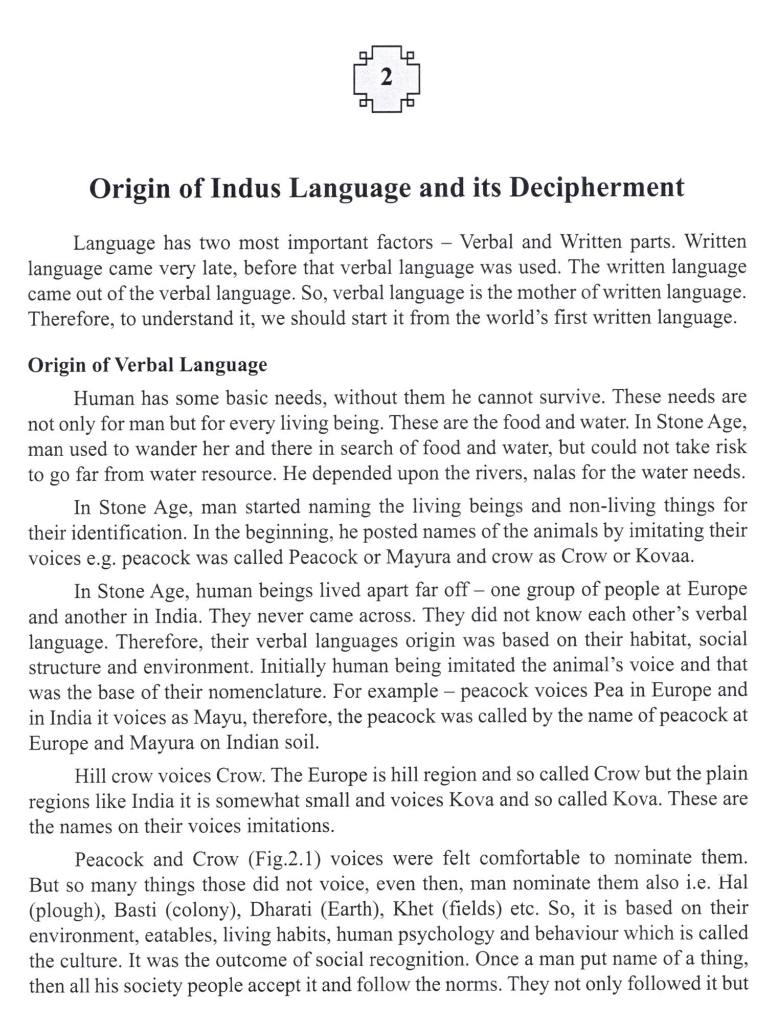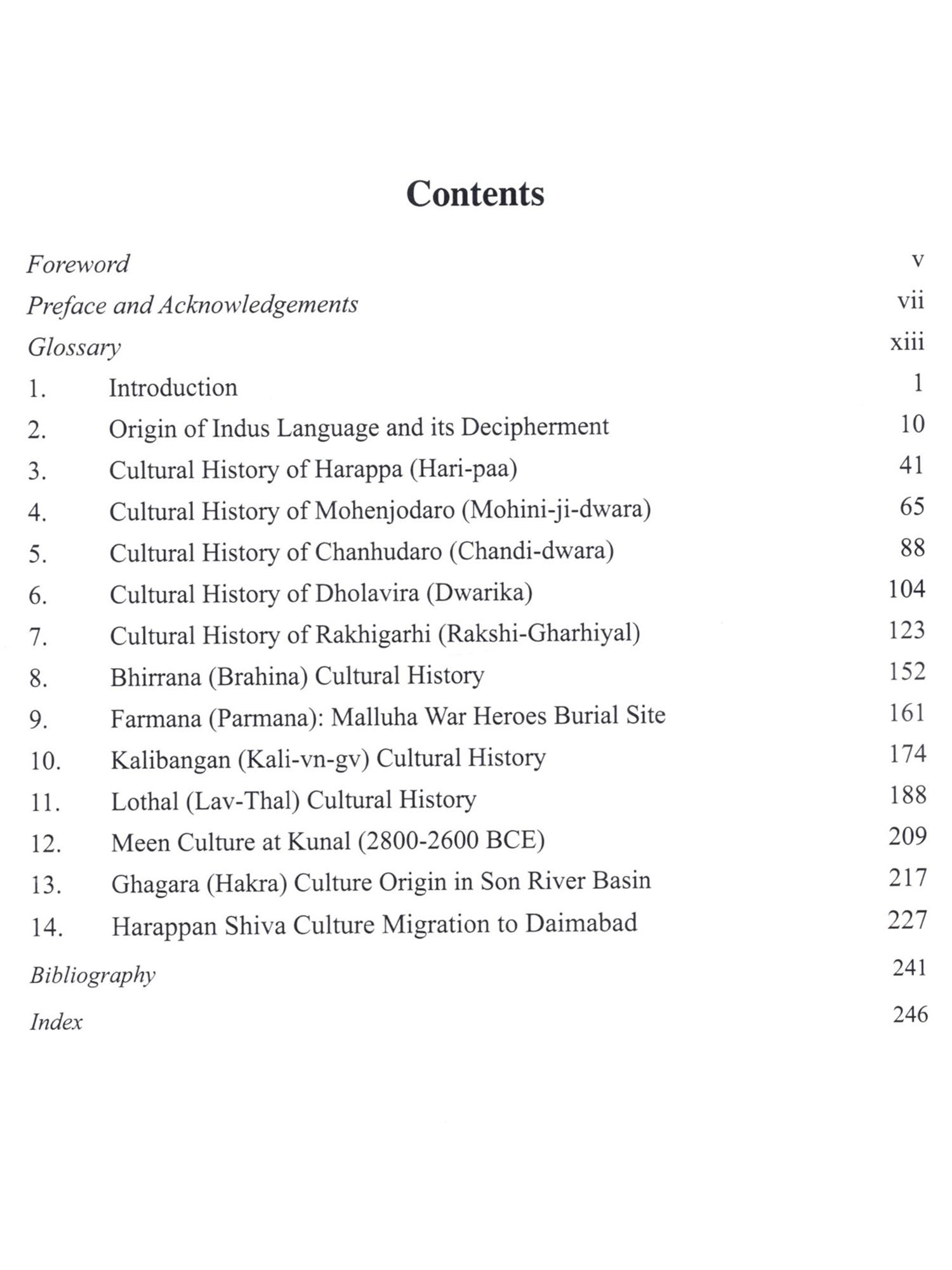 The book deals with the origin of the cultures in the Indus Valley Civilization region. The Indus seals found during excavation at different Harappan sites are deciphered, and the historical background is proved. The seals from Harappa and Mohenjodaro contain inscriptions detailing the history of the Rama dynasty. Chanhudaro has Shiva's lifelong brave activities written on the seals. Dholavira is Krishna's Dvarika (capital city), and the signboard found during excavation is deciphered as "Chakradhar Chakravati Chakrin," which means king Chakradhar, the Krishna. Rakhigarhi was called Rakshigarhi, the capital of Raksas, and the Kairos ruled on the Rakhigarhi. Various cultures governed the Indus cities during different periods. The author presents a new perspective in this book, focusing on the use of words from various languages in the central region of the Harappans, along with their phonetic values. Through this approach, he attempts to decipher the script, which merits recognition for introducing a fresh methodology to the topic.