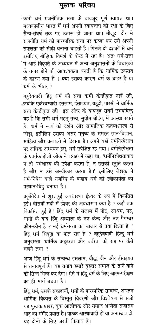 धर्मसत्ता और प्रतिरोध की संस्कृति: Culture of Religion and Resistance