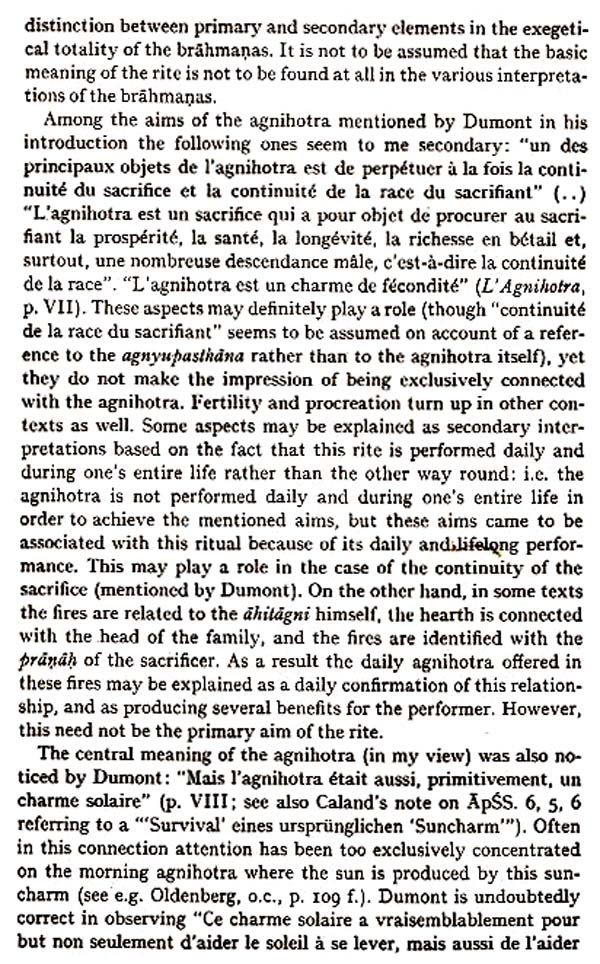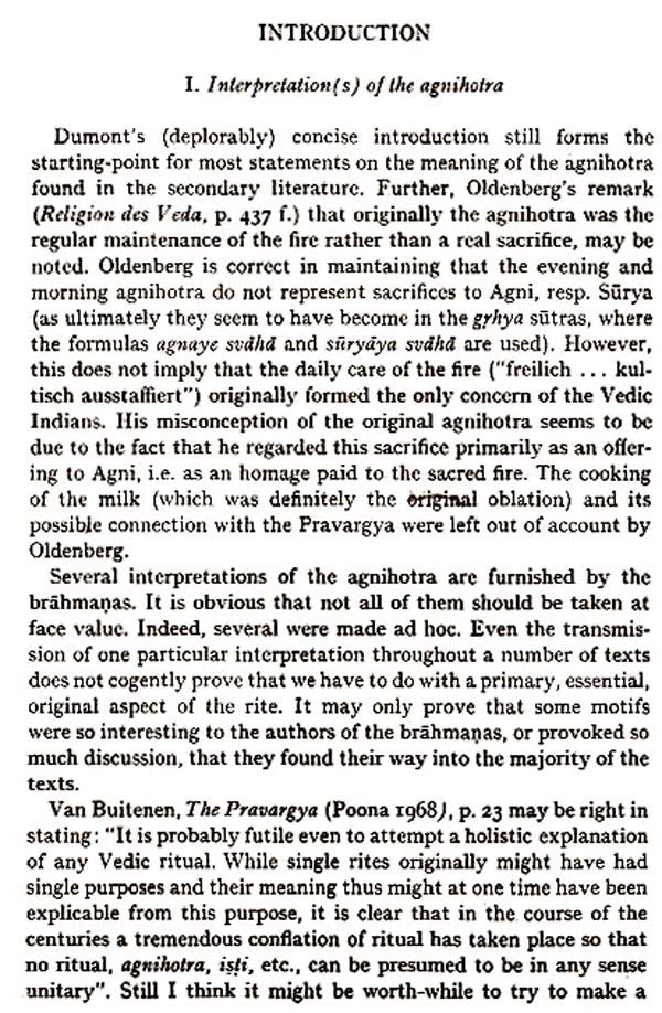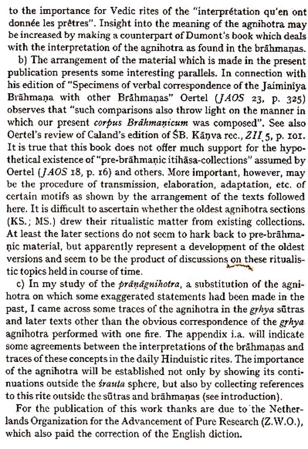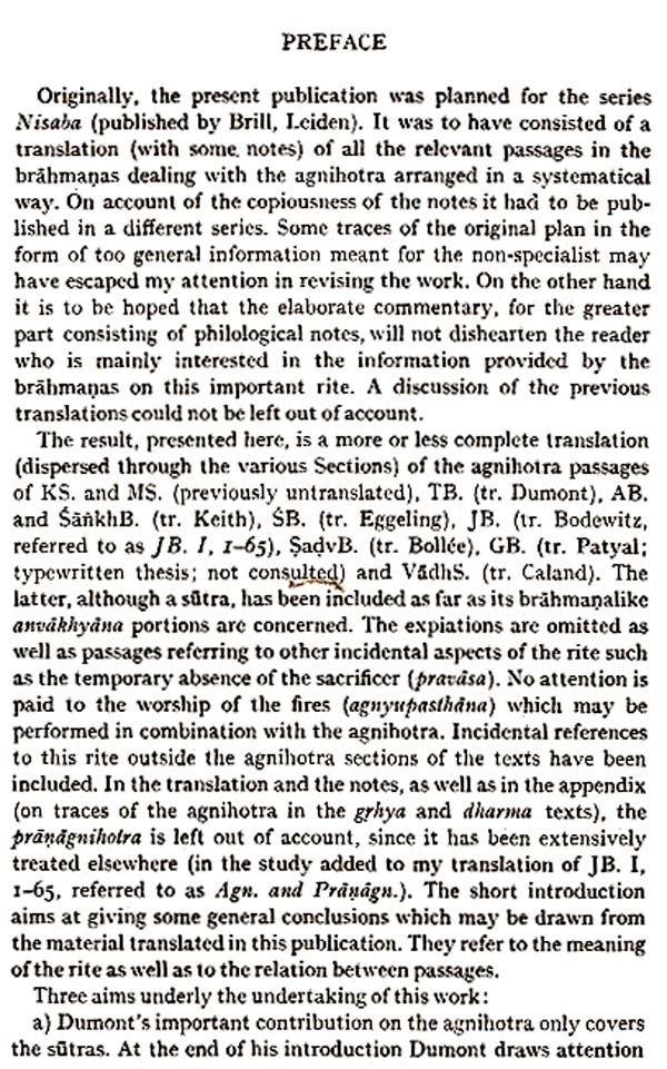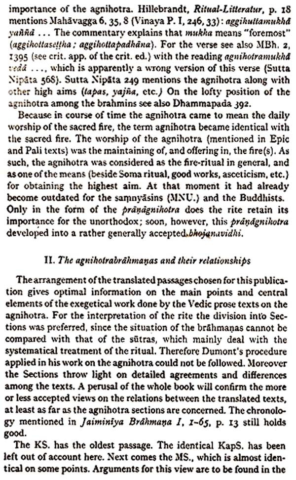 After P.-E. Dumont (Baltimore 1939) had presented a survey of the description of the Agnihotra ritual as found in the ritualistic sutras, this book (originally published in 1976) offered a systematic treatment of the esoteric interpretations of this ritual as found in the Vedic prose texts (including the relevant sections of the Yajurvedic Samhitas). The Agnihotra formed the starting-point for several important doctrines which were further developed in later texts. Apart from its ritualistic relevance it is therefore also of great importance for the early history of ideas in India. The systematic arrangement of the sections translated here increases our knowledge about the network of parallel Vedic texts, their borrowings and relative chronology.