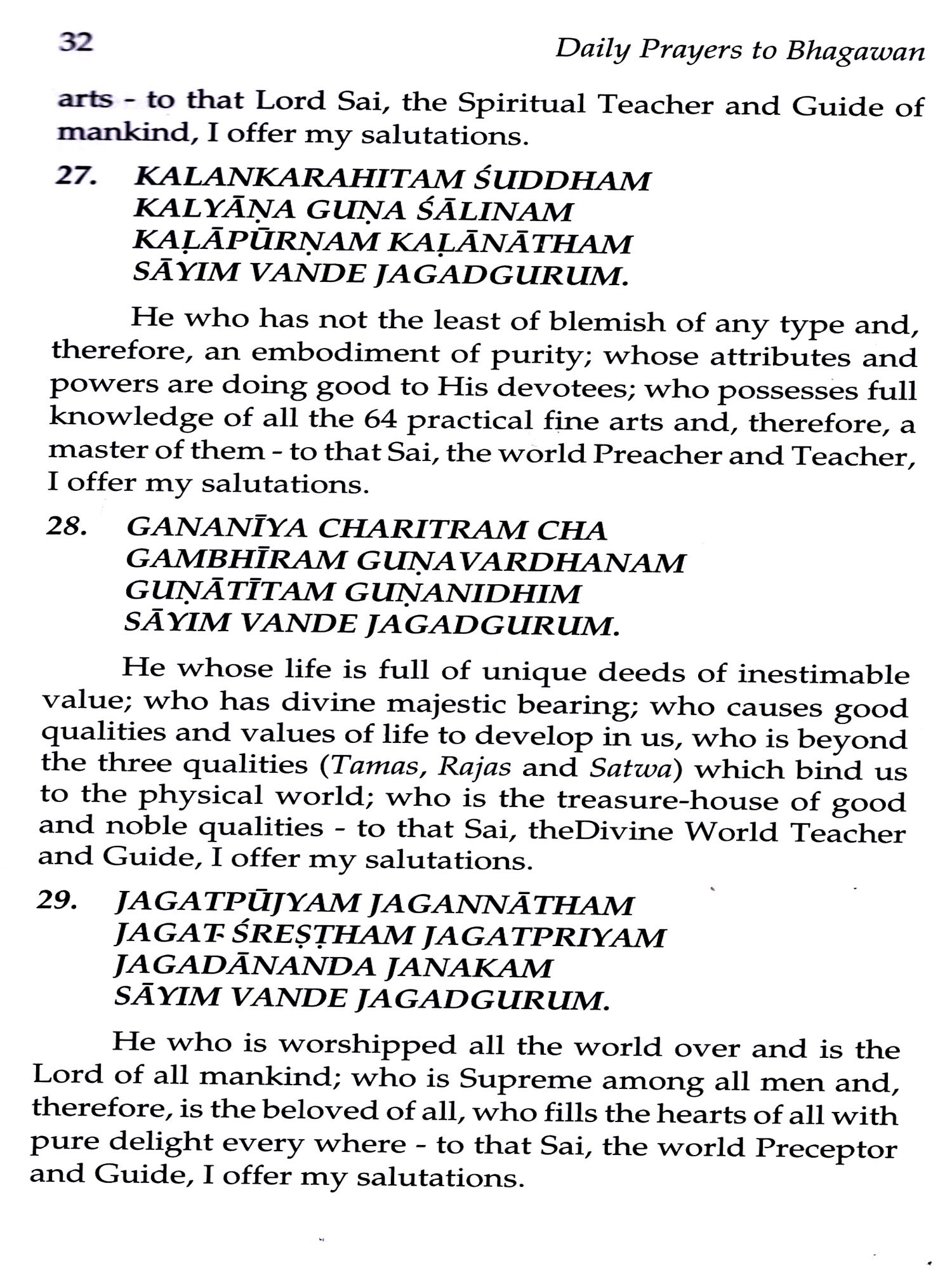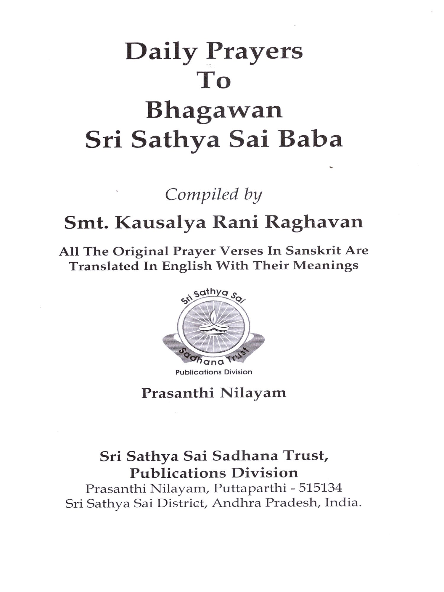 Daily Prayers to Bhagawan Sri Sathya Sai Baba