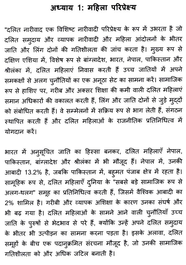 विशेष रूप से ध्यान देने योग्य बात यह है कि दलित महिलाओं पर बोझ और भेदभाव बढ़ गया है, जो जाति, वर्ग और लिंग के आधार पर परस्पर उत्पीड़न का अनुभव करती हैं। समाज के निचले तबके में स्थित दलित महिलाओं को न केवल उच्च वर्गों से बल्कि अपने समुदाय के भीतर से भी भेदभाव सहना पड़ता है। व्यवस्थित लिंग पूर्वाग्रह उनकी दुर्दशा को बढ़ा देता है, क्योंकि साथी दलितों सहित विभिन्न सामाजिक वर्गों द्वारा उनका शोषण किया जाता है। दलित महिलाओं के खिलाफ यह प्रणालीगत भेदभाव बाहरी पूर्वाग्रहों और आंतरिक गतिशीलता दोनों के कारण कई मोर्चों पर उनके सामने आने वाली गंभीर चुनौतियों को रेखांकित करता है।