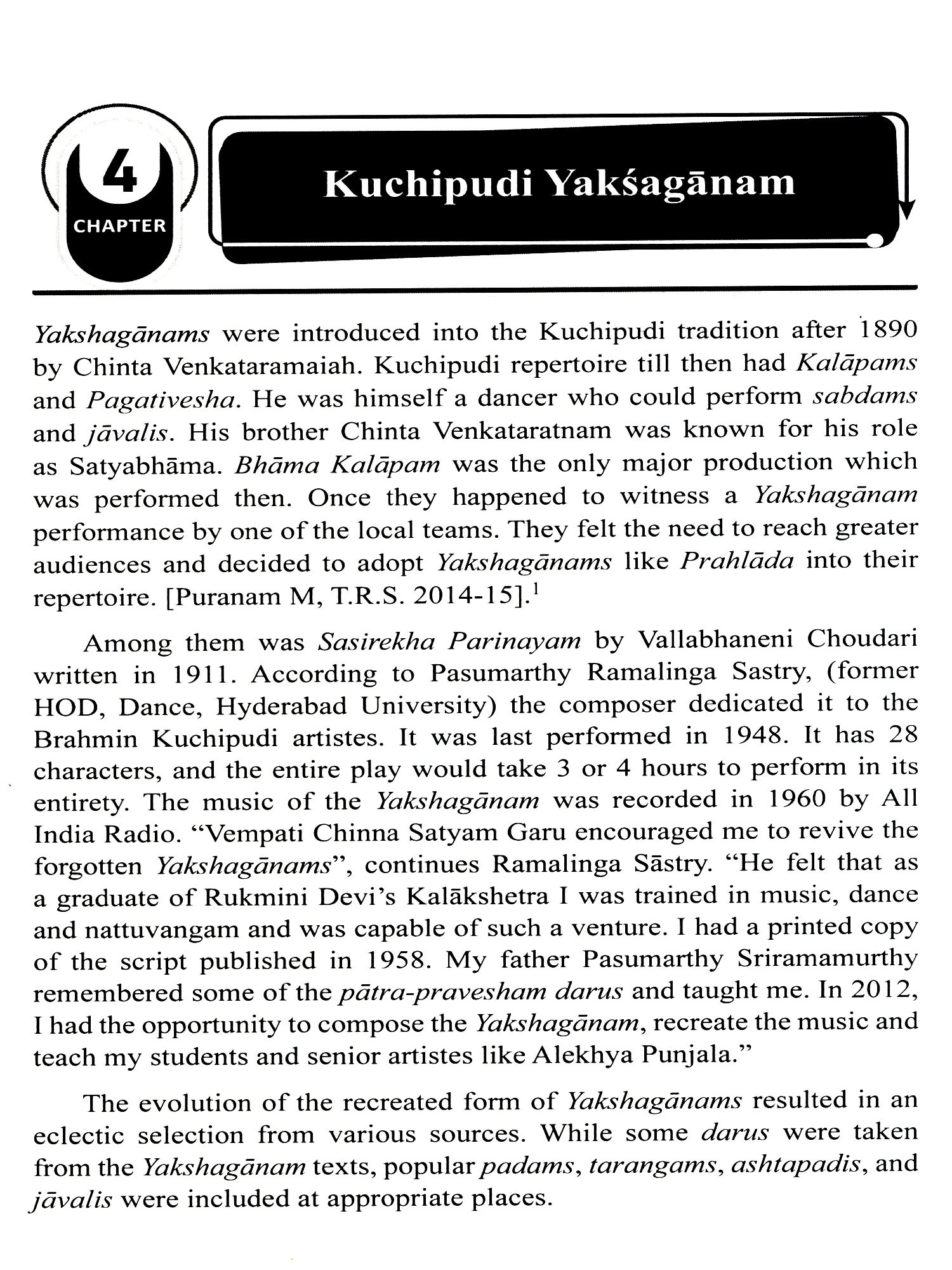 This book is about Yaksaganams, a unique genre of dance-theatre of south India. The term Yaksaganams is generic to dance-theatre format of parallel traditions found in Tamil Nadu, Karnataka and Andhra. While Karnataka's drama tradition is known as Yakshgana, in Andhra it is called Kuchipudi. The Thanjavur (Tamil Nadu) Yaksaganams is today known popularly in its diluted version as dance-drama and dance ballets.