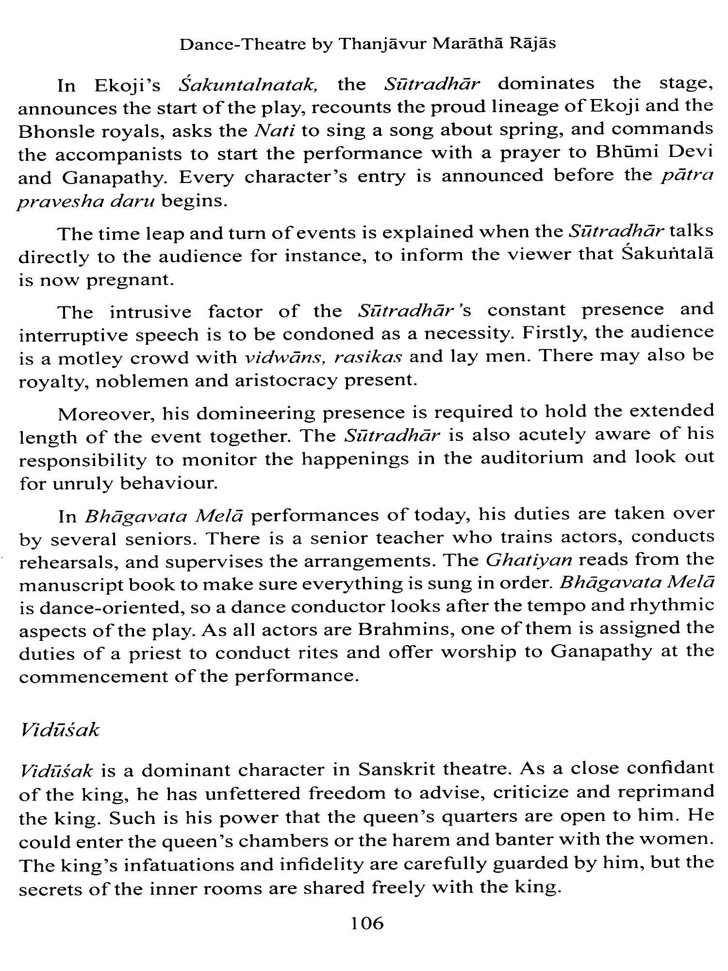 When Sanskrit theatre declined and regional forms raised their heads, they were welcomed by lay viewers and connoisseurs. This book describes the design and rhetoric of the drama format written by the royal Thanjavur Maratha composers.