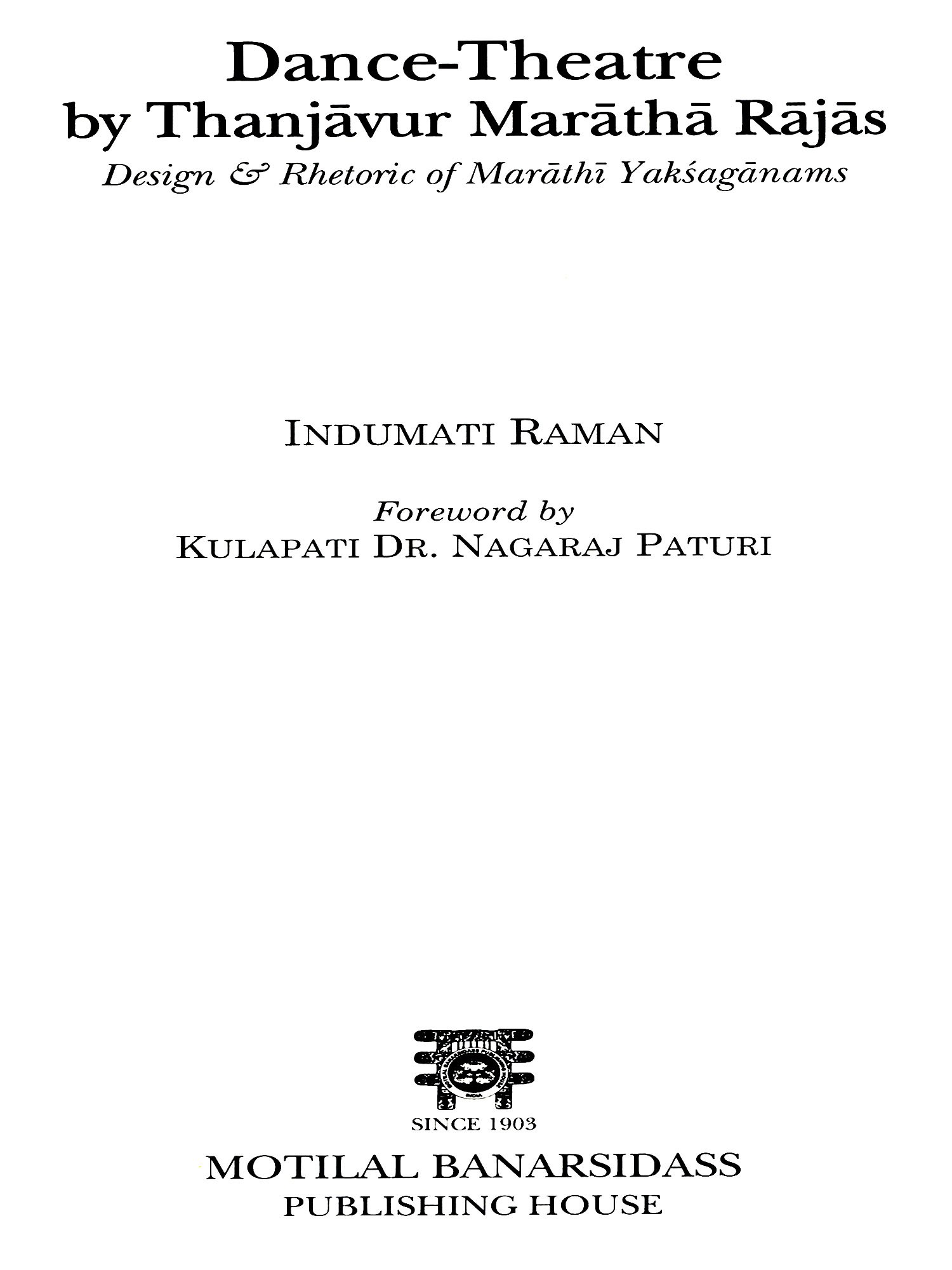 This book is about Yaksaganams, a unique genre of dance-theatre of south India. The term Yaksaganams is generic to dance-theatre format of parallel traditions found in Tamil Nadu, Karnataka and Andhra. While Karnataka's drama tradition is known as Yakshgana, in Andhra it is called Kuchipudi. The Thanjavur (Tamil Nadu) Yaksaganams is today known popularly in its diluted version as dance-drama and dance ballets.