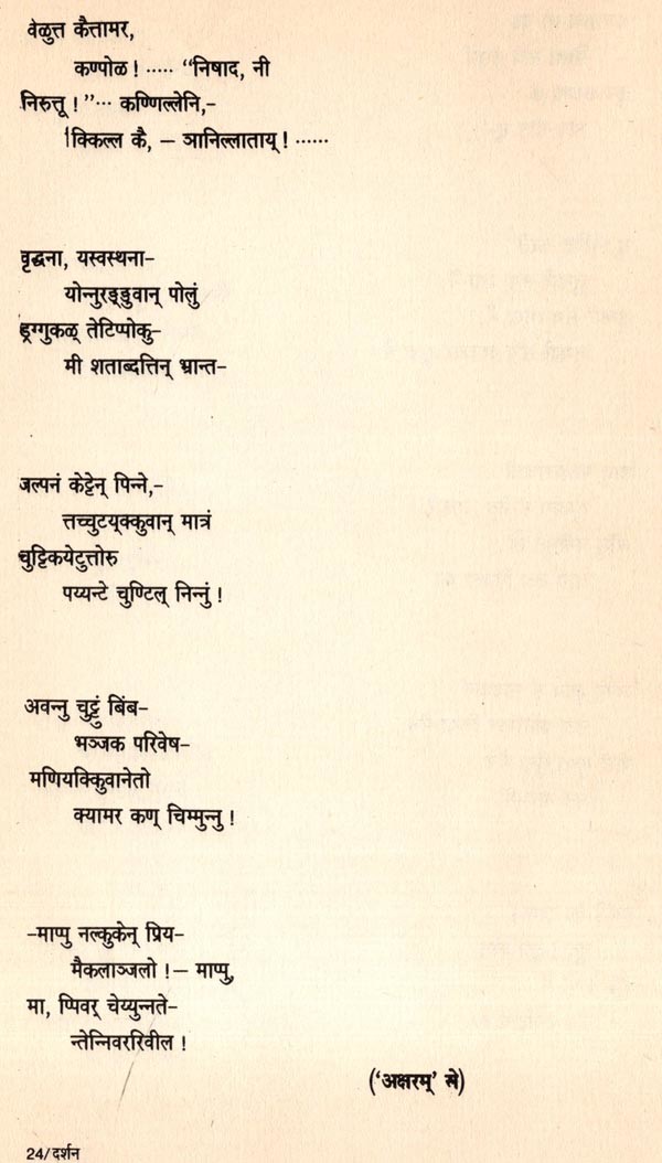 मलयालम के यशस्वी कवि प्रोफेसर ओ० एन० वी० कुरुप को समझने-परखने में यह अनुवाद कुछ सीमा तक अगर सहायक हुआ, तो मैं अपने विनम्र प्रयास को चरितार्थ मानूँगा।