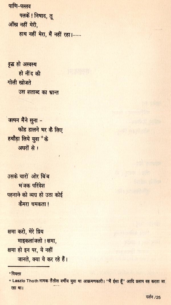प्रस्तुत संग्रह में ओ० एन० वी० की छोटी-बड़ी पच्चीस कविताओं का अनुवाद समाविष्ट है। किसी भी कविता का अनुवाद, वह भी कविता में, करके विजय पाना सहज सरल कार्य नहीं है। प्रकृत्या कवि न होने के कारण काव्यानुवाद में मेरी कठिनाई और भी बढ़ जाती है। अपनी सीमा से पूर्णतया अवगत होने के कारण मैंने अपने अनुवाद में कवि के भावों की यथासंभव रक्षा करने की ओर विशेष ध्यान दिया है, फलतः उनके काव्य में अनायास प्राप्त प्रसाद गुण, पद-मैत्री एवं स्वर-मैत्री यहाँ सर्वथा उपेक्षित रह गयी।