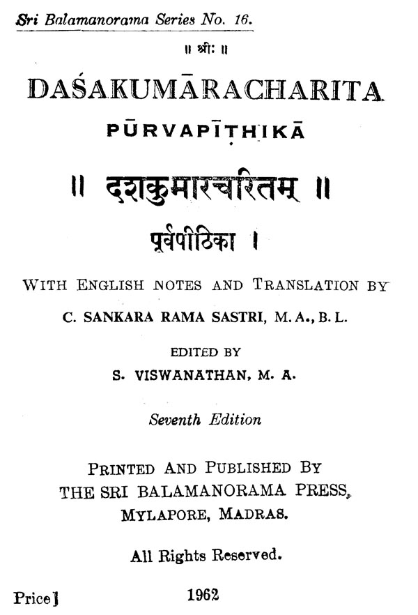 दशकुमारचरितम पूर्वपीठिका: Dasakumaracharita Purvapithika