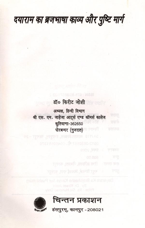 दयाराम का ब्रजभाषा काव्य और पुष्टि मार्ग- Dayaram Ka Brajbhasha Kavya Aur Pushti Marg