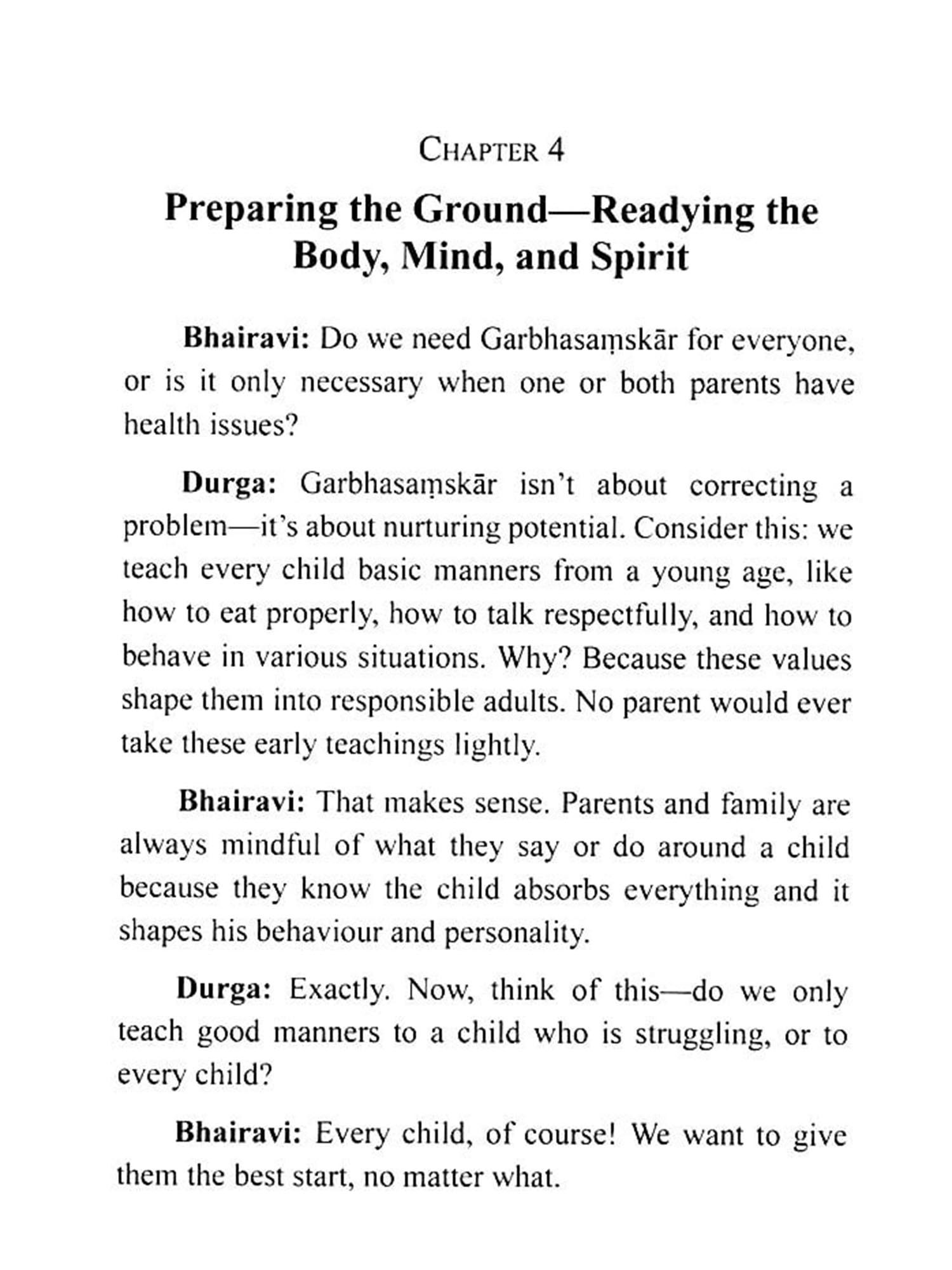 Garbhasamskara Decoded: Your Guide to a Supraja is a gentle, soul-touching conversation between two friends-Bhairavi and Durga. Through their relatable dialogue, the book unveils the timeless treasures of Garbhasamskara, offering guidance from pre-conception to post-delivery. Rooted deeply in Ayurvedic wisdom, it addresses the emotional, physical, and spiritual aspects of motherhood in a way that feels both ancient and refreshingly modern.