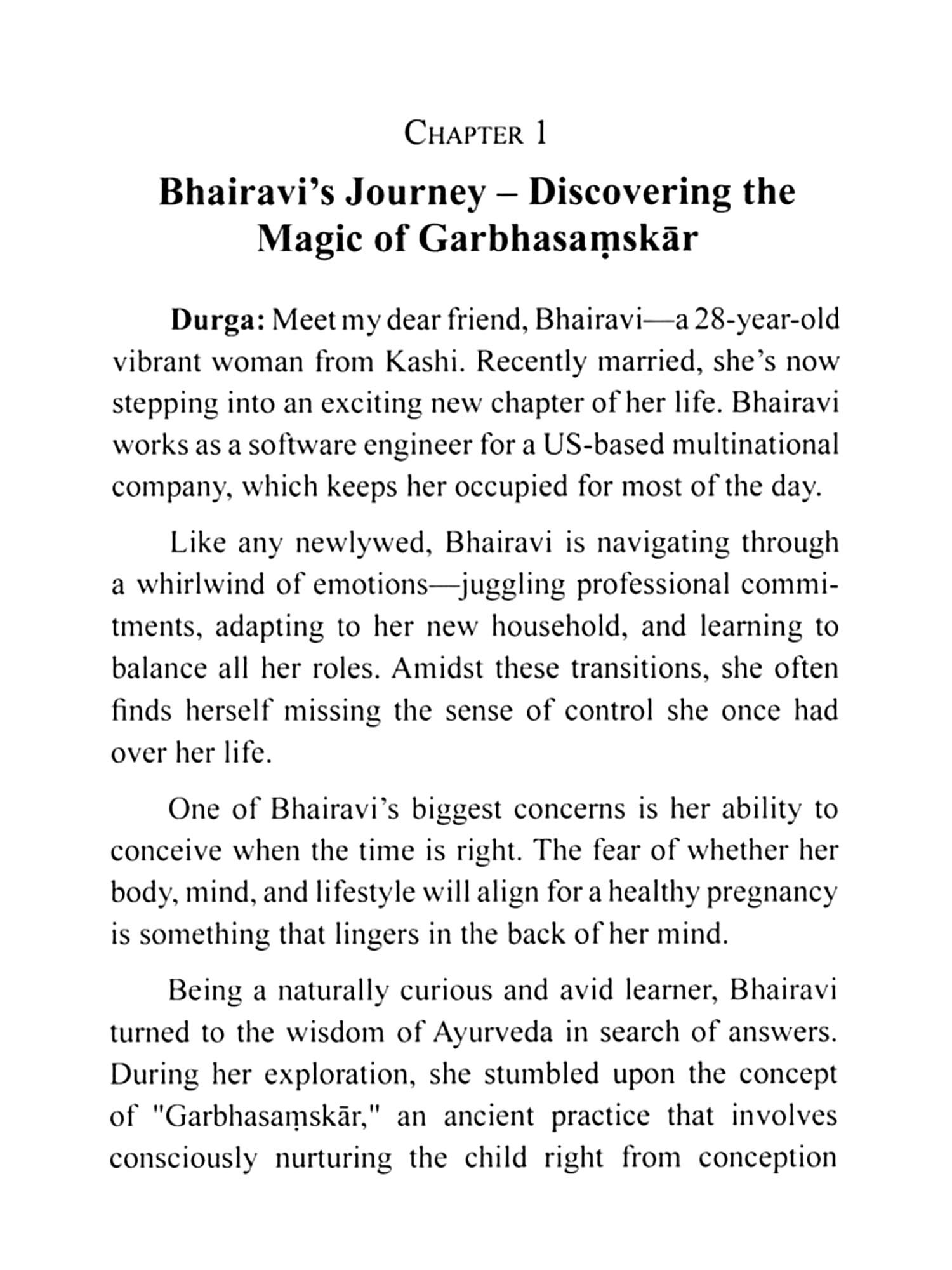 Garbhasamskara Decoded: Your Guide to a Supraja is a gentle, soul-touching conversation between two friends-Bhairavi and Durga. Through their relatable dialogue, the book unveils the timeless treasures of Garbhasamskara, offering guidance from pre-conception to post-delivery. Rooted deeply in Ayurvedic wisdom, it addresses the emotional, physical, and spiritual aspects of motherhood in a way that feels both ancient and refreshingly modern.