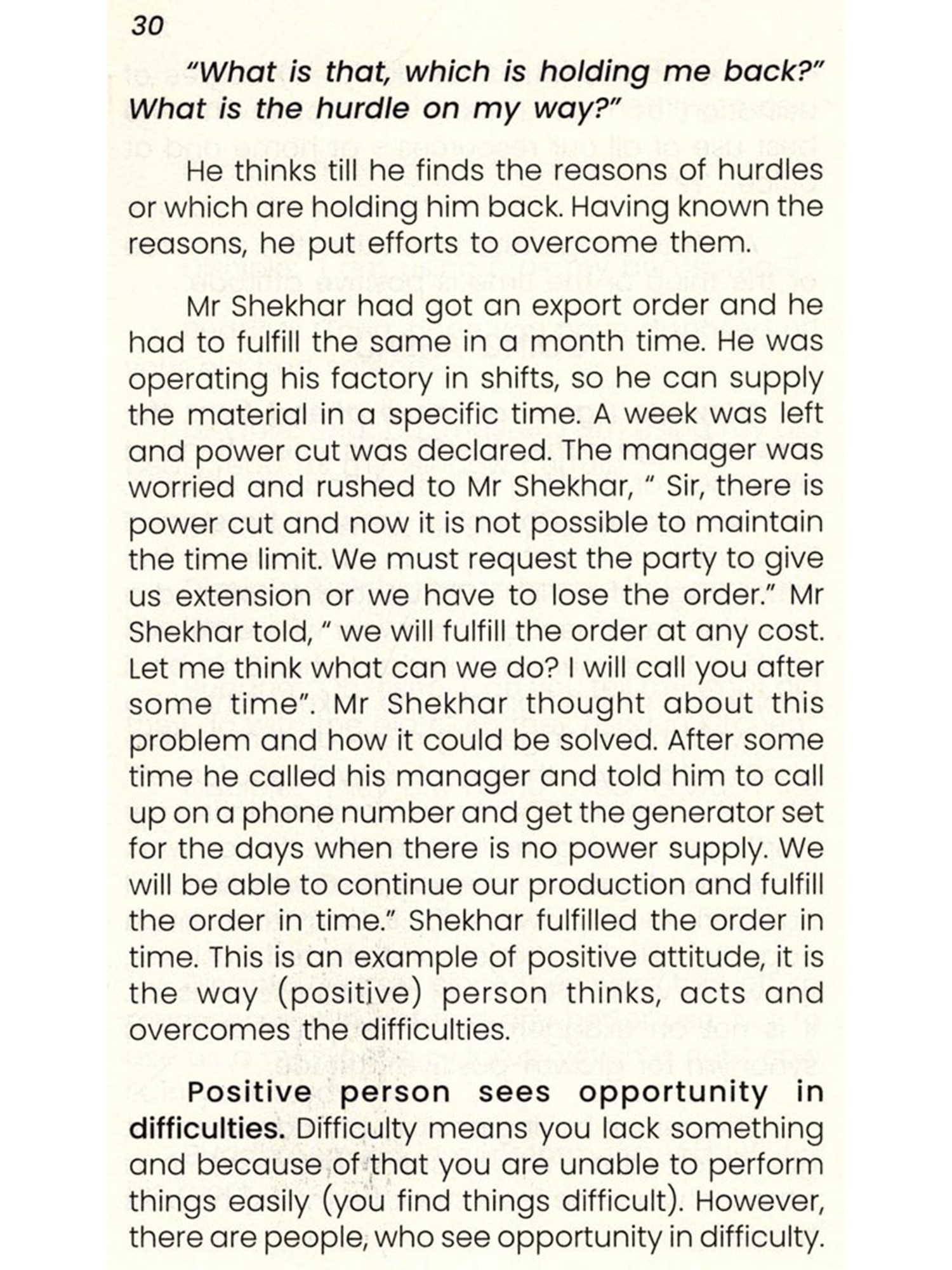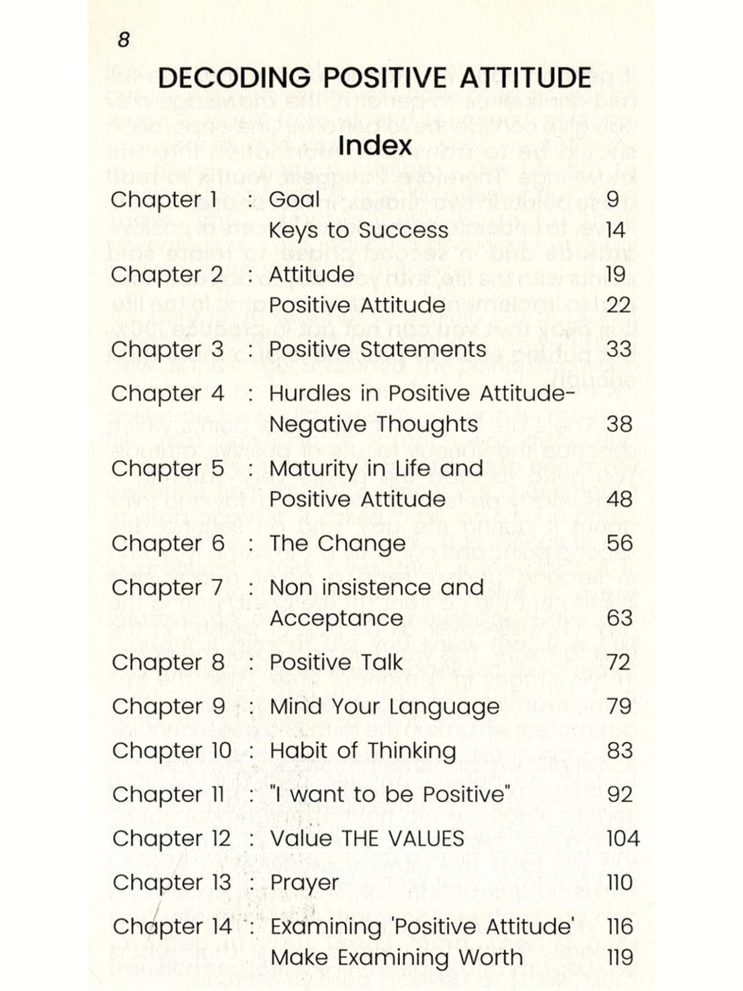 Here I would like to talk decode/unfold term positive attitude. Once we understand what the meaning(s) of positive attitude is (are), then only we can know the value, importance of the same and that may/will make us to think about it. Once you start thinking about positive attitude, you can see the glimpse of positive attitude or experience the positive attitude, you can see the glimpse of positive attitude or experience the positive attitude in self or in others. One who really thinks seriously about positive attitude, he would definitely feel need to develop the same. However, developing positive attitude-knowingly/consciously; is very difficult or may be it is rare. Even question would be asked that 'why should I develop positive attitude!'