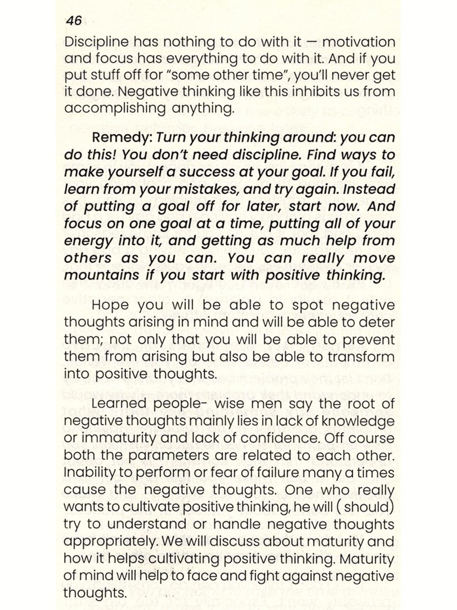 Everybody has Positivity in his nature as I mentioned generally we look for 'Phayado'. That means, one develops the positivity, unknowingly also, as time progresses as the age progresses. And if, one develops understanding about positivity (of his nature) knowingly- intentionally; he can gain positive attitude earlier than his age.