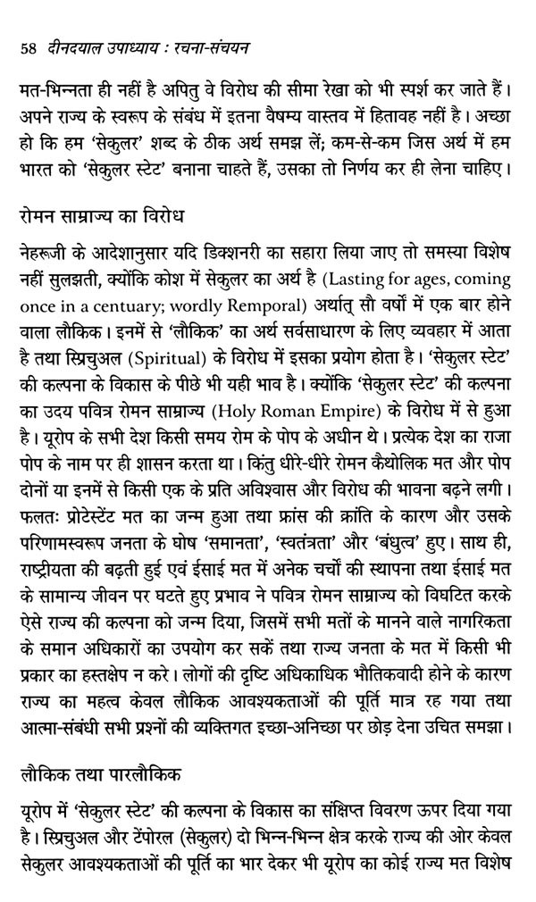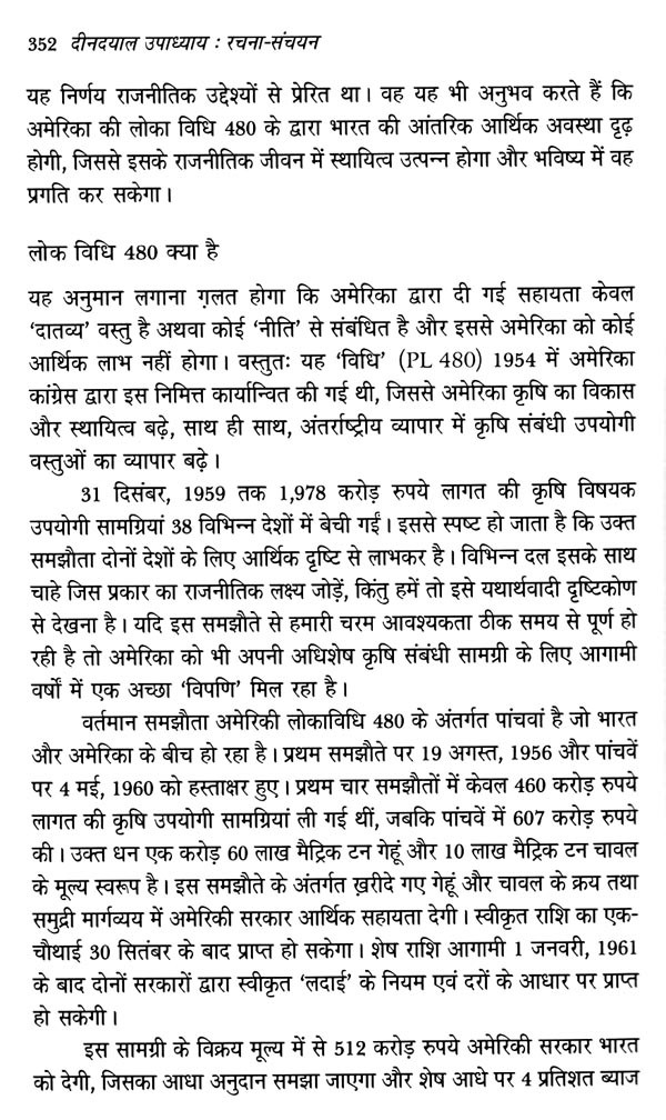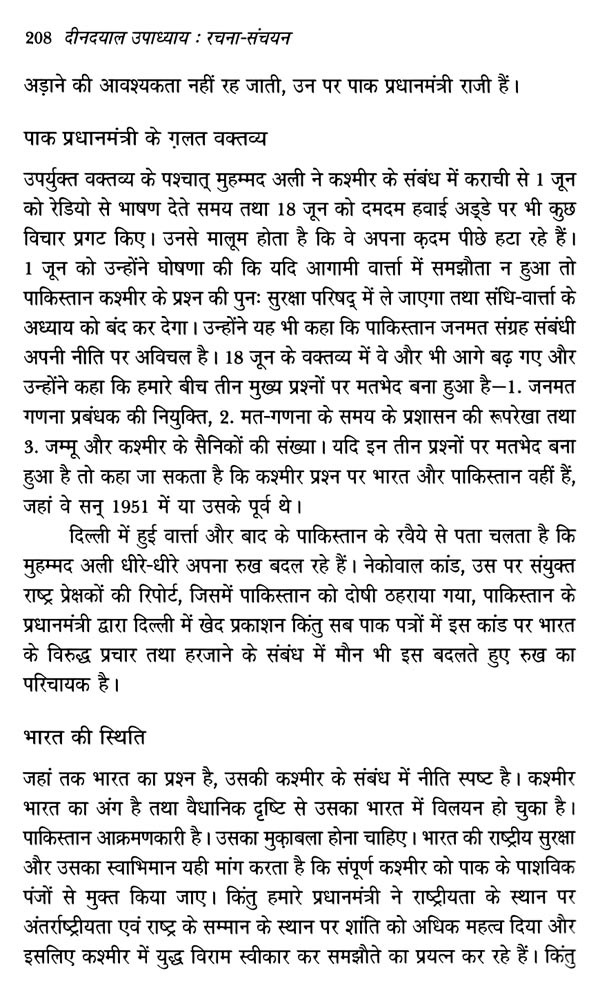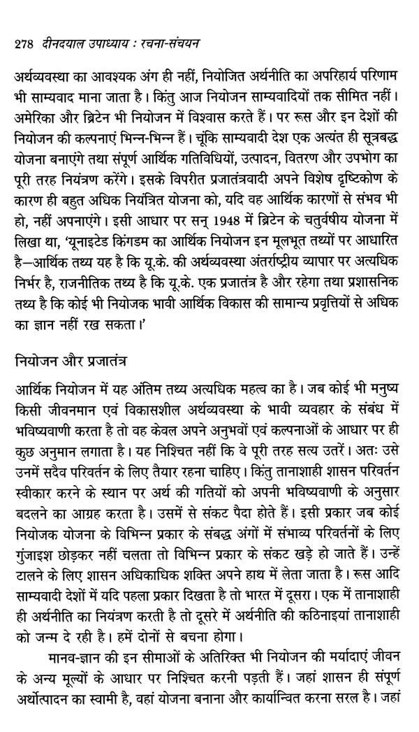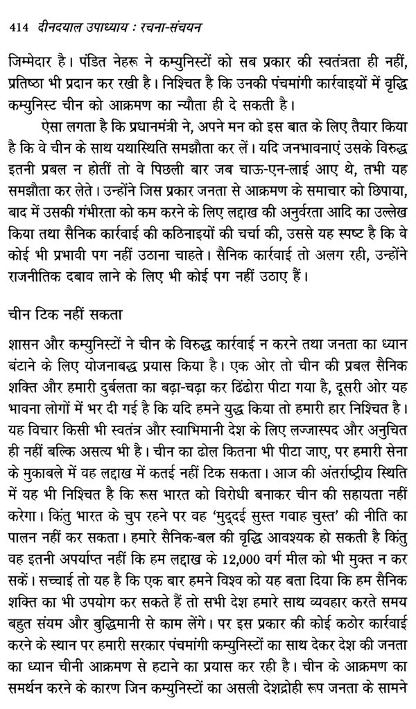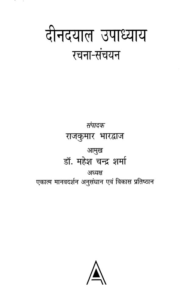पं. दीनदयाल उपाध्याय के विचार प्रवाह से अनुप्राणित दीनदयाल उपाध्याय रचना-संचयन ऐसा संकलन सिद्ध हुआ, जो राष्ट्रीय स्वयंसेवक संघ के शलाका पुरुष पं. दीनदयाल उपाध्याय के अलौकिक चिंतन और प्रज्ञा का साक्षात वाङ्मय है। पं. दीनदयाल उपाध्याय ने बंबई में 22 से 25 अप्रैल, 1965 के मध्य मानव, समाज, राष्ट्र और प्रकृति के पारस्परिक संबंधों की मीमांसा करते हुए अपने चार अध्यायों के माध्यम से भारतीय जनसंघ की विचारधारा की आधारशिला रखी, जो कालांतर में मानव एकात्मवाद के रूप में जाना गया और इसे बाद में भारतीय जनता पार्टी ने अपनी विचारधारा के तौर पर अंगीकार किया। राष्ट्र धर्म पत्रिका और उसके बाद संघ के मुखपत्र पांचजन्य के प्रकाशन के क्रम में मां शारदा की असीम कृपा से उनकी लेखनी से जो निःसृत हुआ, वह मानव एकात्मवाद के वृहद् अंगों को समेटे हुए था। इन अध्यायों में वेद वर्णित मानव के संपूर्ण सृष्टि से संबंध के अध्याय को उन्होंने वर्तमान संदर्भों में व्यापक दृष्टिकोण से आलोकित किया। मानव और जीव मात्र के लिए जितनी खरी कसौटी पर इस एक दर्शन ने समग्र चिंतन प्रस्तुत किया है, उसका अन्य दर्शनों में सर्वथा अभाव दिखता है। ऐसे आलेखों से गुंथी एक माला है दीनदयाल उपाध्याय रचना-संचयन। साठ के दशक में विभिन्न लेख-मालाओं में उन्होंने जिन ऐतिहासिक, भौगोलिक, सांस्कृतिक, राजनीतिक और सामाजिक चिंताओं को रेखांकित किया, वे संपूर्ण मानवता संग अखंड भारत के लिए प्रकाशपुंज सिद्ध हो रही हैं। समाजवादी नीतियों वाली शासन प्रणाली के विद्रूपों को उजागर करते हुए उन्होंने इस माध्यम से भारत के गौरवमयी स्वर्णिम काल का संकल्पना पत्र प्रस्तुत किया।