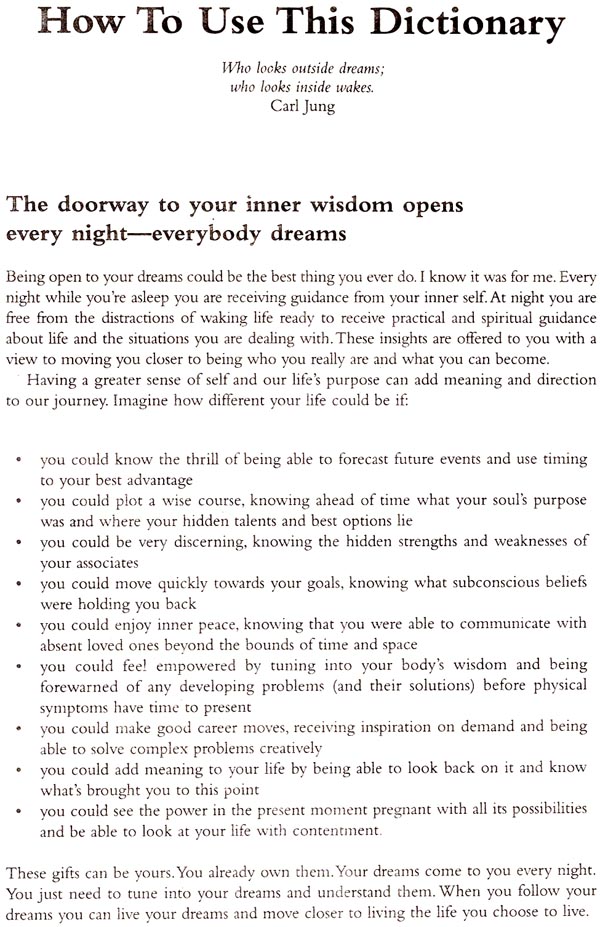 The Definitive Dream Dictionary is the ultimate reference tool to help you unlock the meanings of your dreams. This contemporary, self-teaching guide empowers you, the dreamer, to ask the right questions and shows you how to link dream meanings to events taking place in your life.