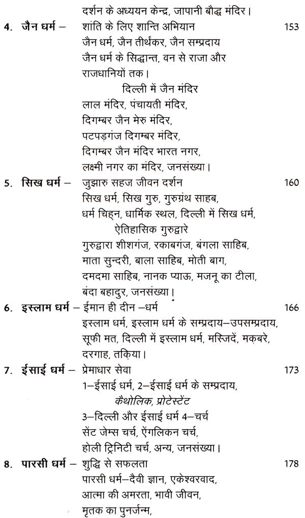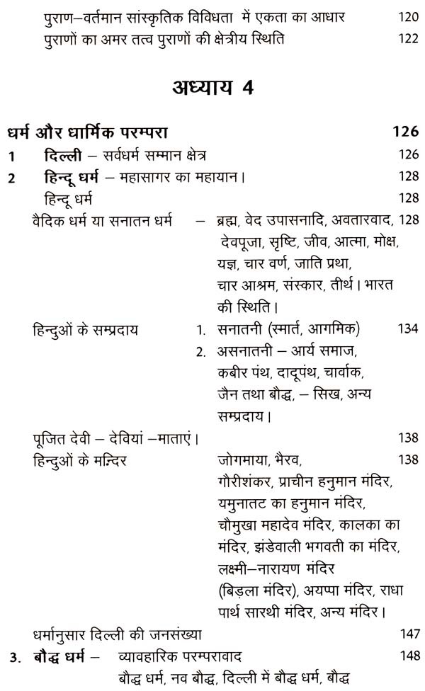 चौथे अध्याय में यहां की धार्मिक परम्परा दर्शाई गई है। यहां सर्वधर्म सम्मान का वर्तमान दर्शन वेद-वेदान्त और पौराणिक परम्परा की देन है। निगमबोध में भारत के समस्त तीर्थो की स्थापना भारत के सर्वतीर्थ सम्मान के भाव को दर्शाता है। जिसे उन दिनों सम्प्रदाय की संज्ञा दी जाती थी वही आज की भाषा में धर्म बन गए हैं। धर्म तो एक ही है- मानव धर्म। यही धर्म सनातन काल से चला आने के कारण सनातन धर्म है। हमारे संविधान ने सभी नागरिकों को समान अधिकार देकर उसी मानव धर्म या सनातन धर्म की पुष्टि की है जिसका मूल-मंत्र 'सत्यमेव जयते' है। महात्मा गांधी जी की सत्प्रेरणा से यही हमारा राष्ट्रीय उ‌द्घोष है।