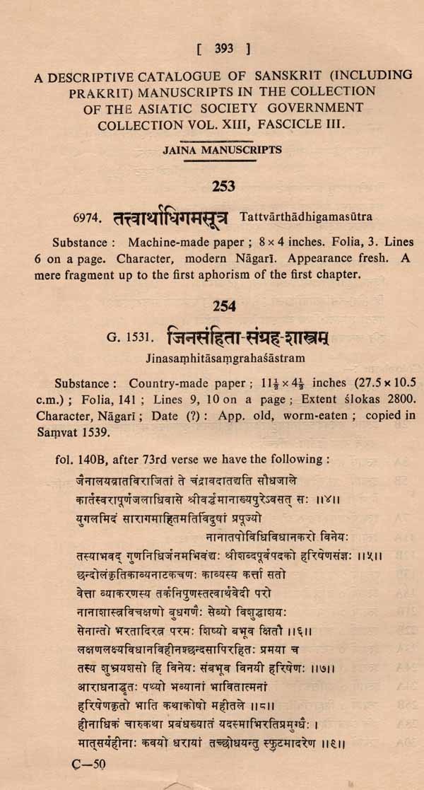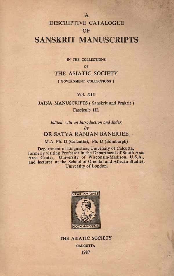 A Descriptive Catalogue of Sanskrit Manuscripts- Jaina Manuscripts (Sanskrit and Prakrit- Vol. XIII, Fascicule 111) An Old and Rare Book