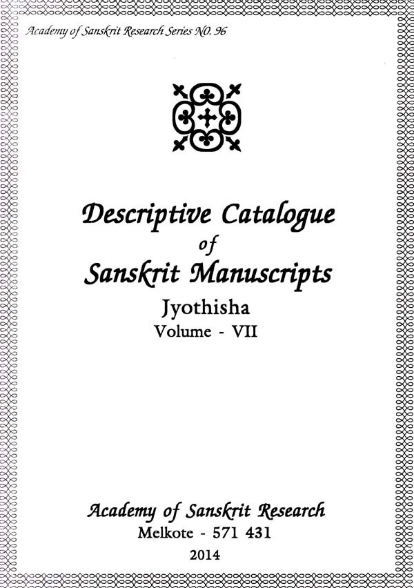 The present effort, viz. Preparation of Descriptive Catalogues of the works on Veda and Upanisat works available in the Academy's library. I am also happy to place on record the dedicated efforts of Sri. S. Kumar, Registrar in terms of his constant monitoring of the progress of the work as well as Vid.H.S. Hanumantha Rao, Granthapala for his duly involvement in preparing this catalogue of manuscript. Now, it is placed in the hands of research scholars and seekers of knowledge.