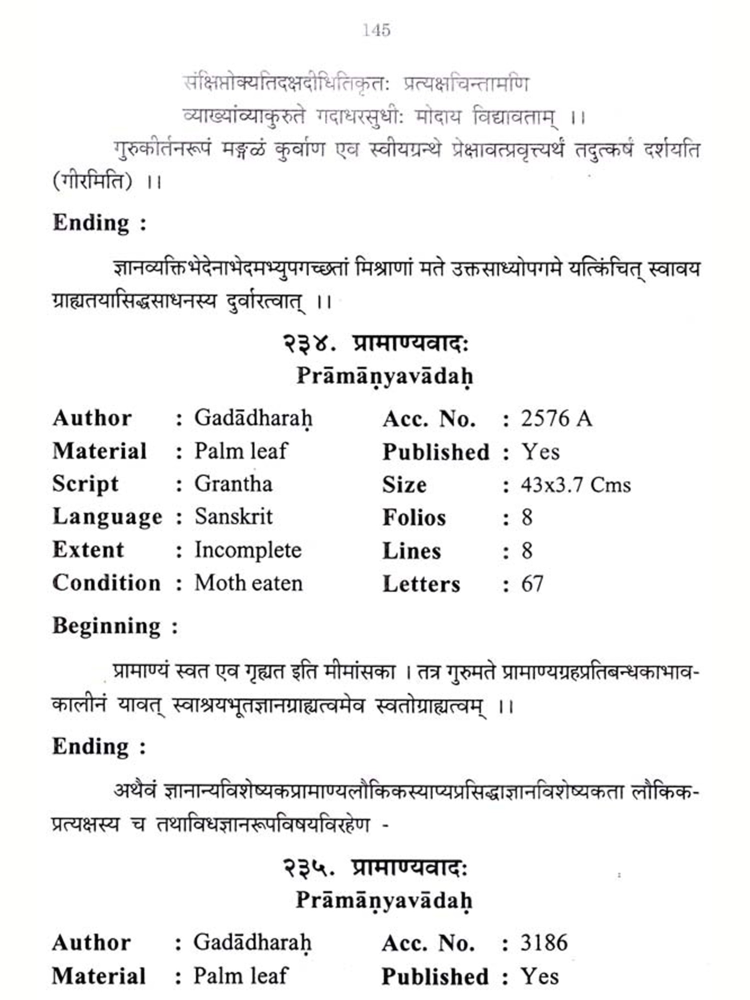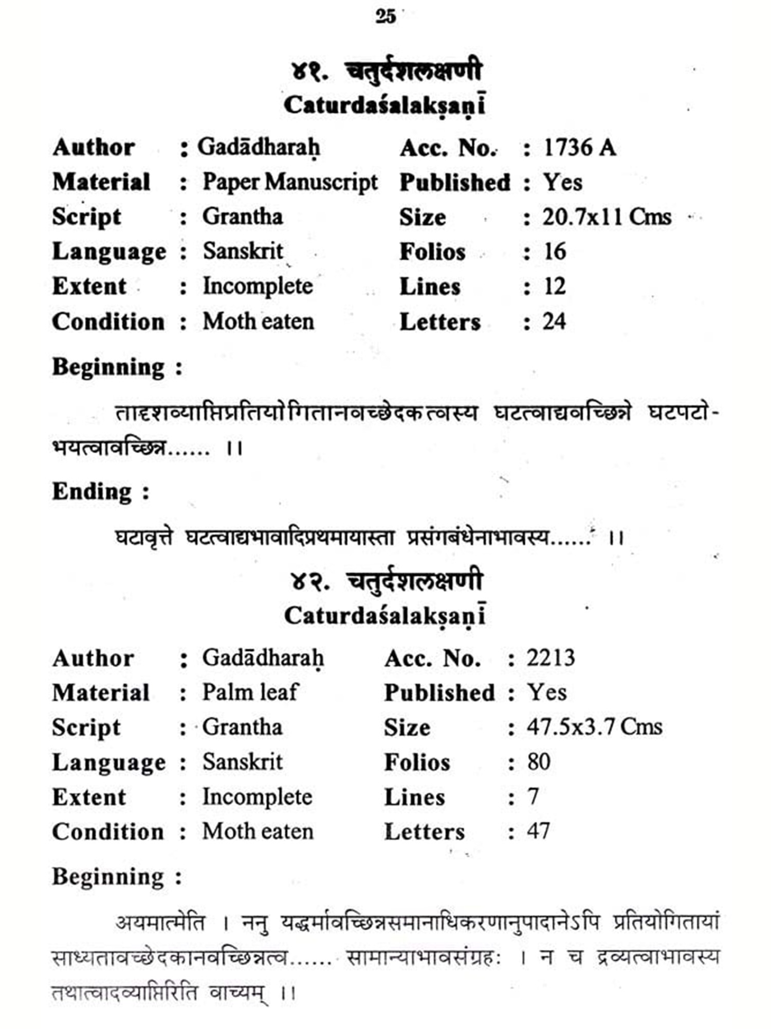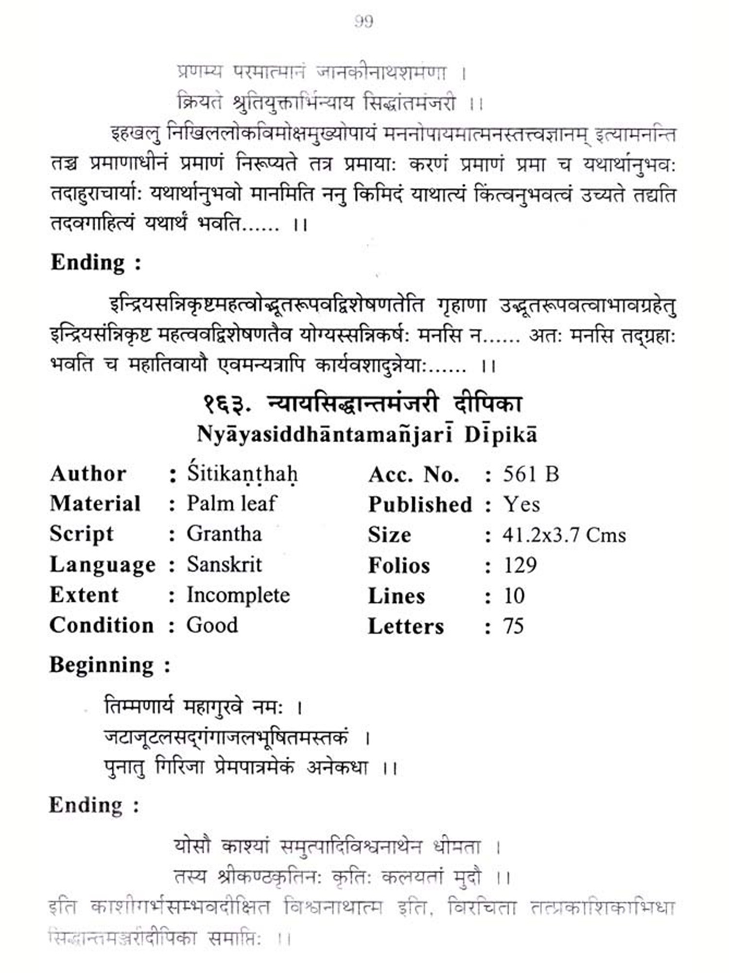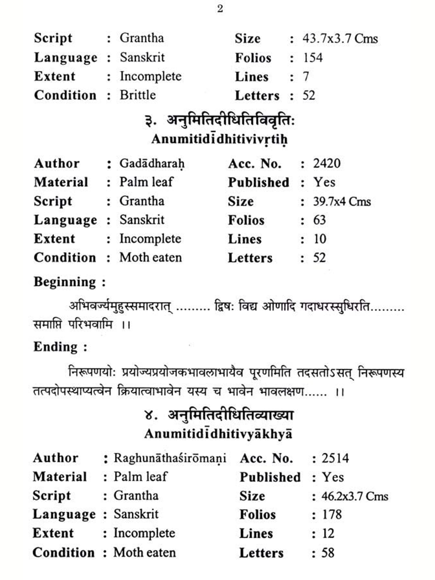 Descriptive catalogue of Nyaya manuscripts is very much needed in the present scenario, since there are numerous manuscripts which have a vast treasure of knowledge hidden in them require the attention of researchers to unearth for the benefit of knowledge seekers in the field of Indology. The system of Navya Nyaya which was prevalent and follwed by the scholars in the area of Nadiya of Bengal and Mithila of Bihar gradually spread towards south.