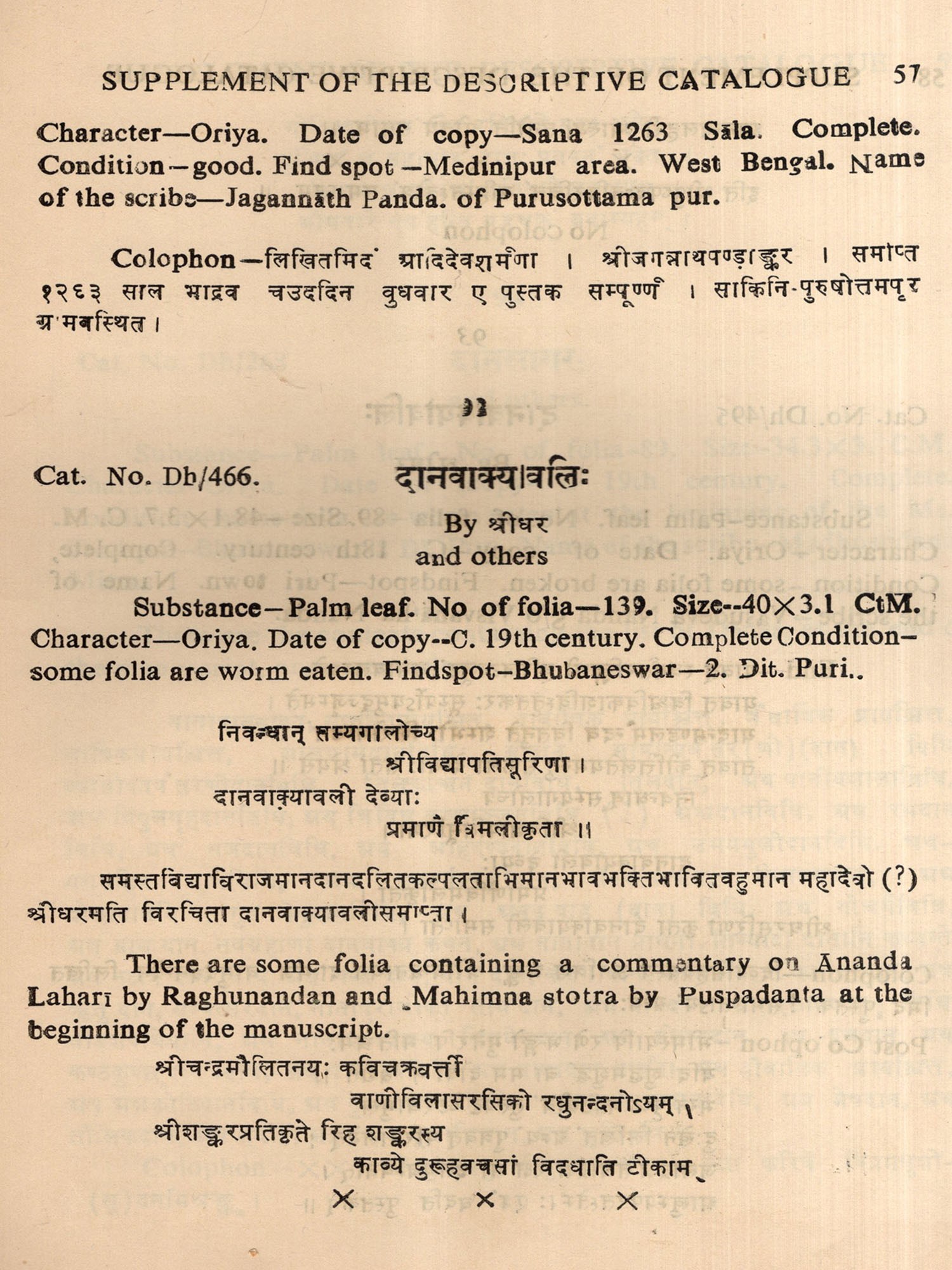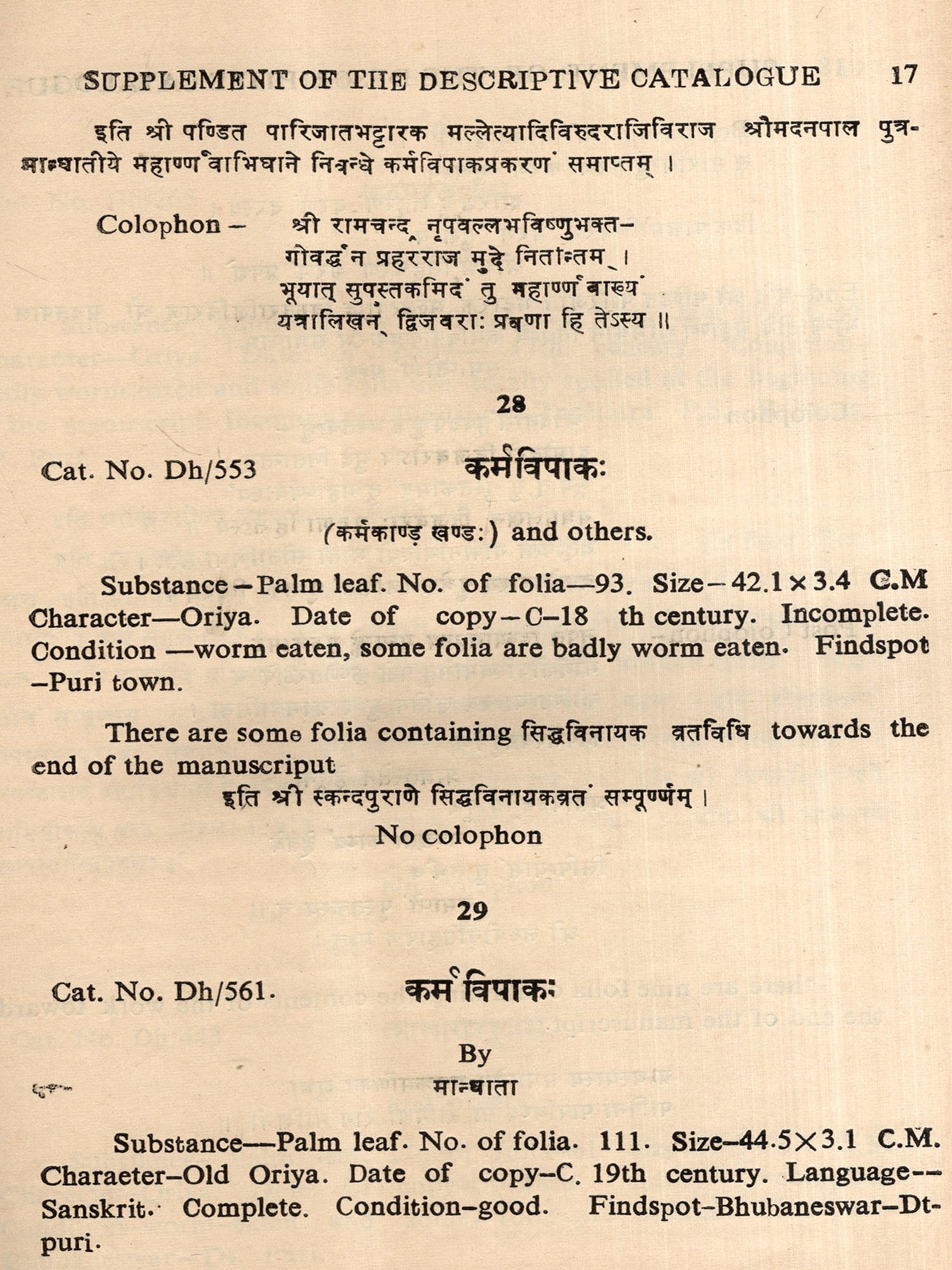 An Alphabetical Catalogue of Sanskrit Manuscripts: Part- 1 (An Old and Rare Book with Pinholed)