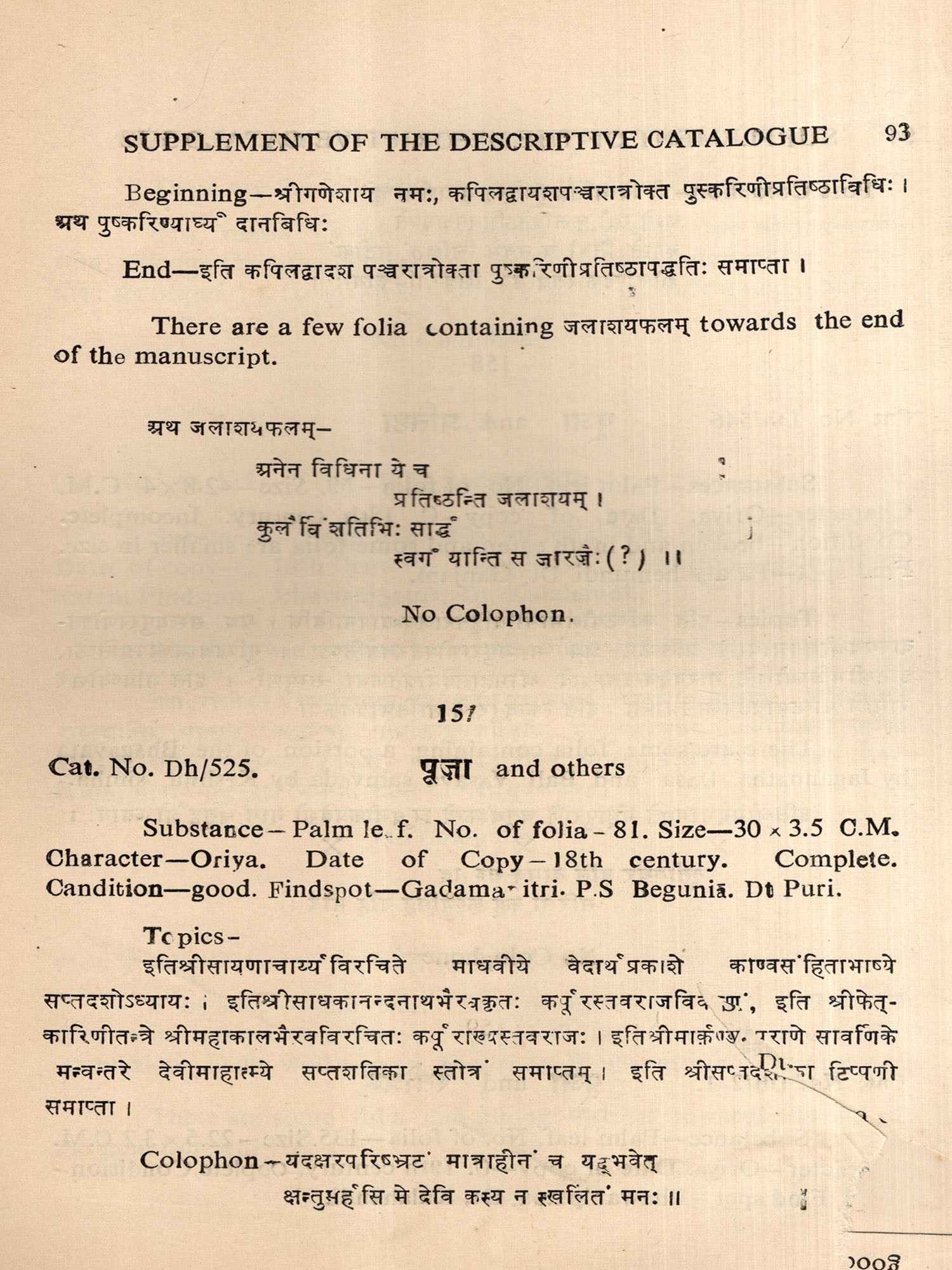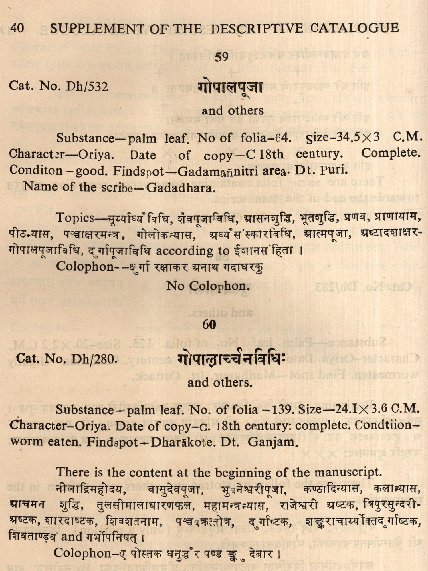 A Descriptive Catalogue of Sanskrit Manuscripts of Orissa in the Collection of the Orissa State Museum Bhubaneswar- Volume-V, Tantra Manuscripts (An Old and Rare Book)