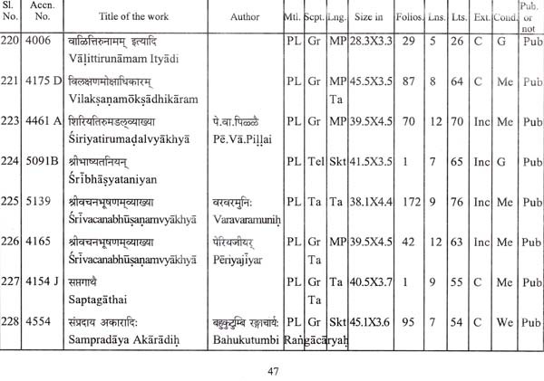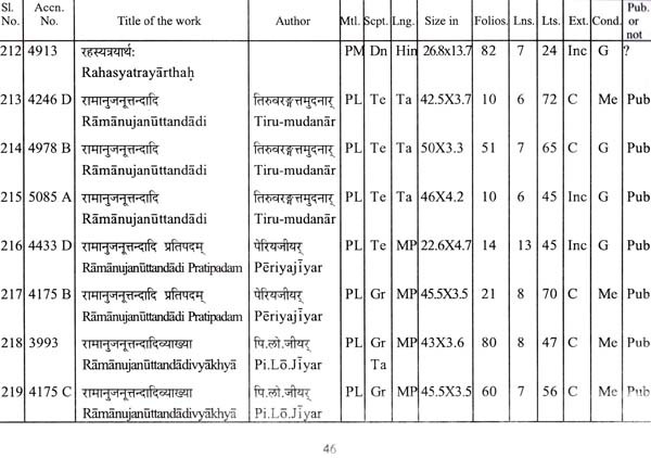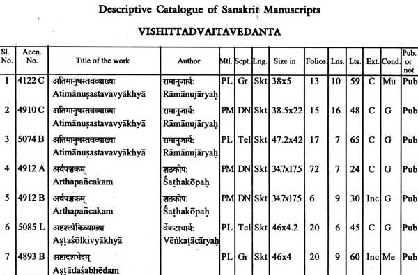 Descriptive Catalogue of Sanskrit Manuscripts- Visistadvaita Vedanta and Dravidaprabhandam (Volume-12)