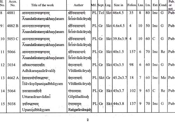 The present effort, viz. Preparation of Descriptive Catalogues of the works on Veda and Upanisat works available in the Academy's library. I am also happy to place on record the dedicated efforts of Sri. S. Kumar, Registrar in terms of his constant monitoring of the progress of the work as well as Vid.H.S. Hanumantha Rao, Granthapala for his duly involvement in preparing this catalogue of manuscript. Now, it is placed in the hands of research scholars and seekers of knowledge.