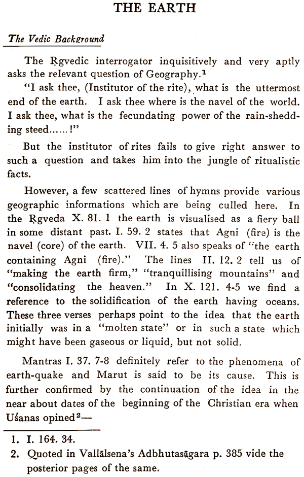 This field of geographic-cum-Indological investigation remained totally unearthed and unexplored. Its veiled mystery and novelty scintillated with great fascination for me; besides, its unravelling was long-awaited and had be-come a crying need of the day, specially when geography came to occupy its rightful place in India in the modern era. This incentive and inspiration propelled me to undertake this work. It covers the period from the Vedic times to 1200 A.D.