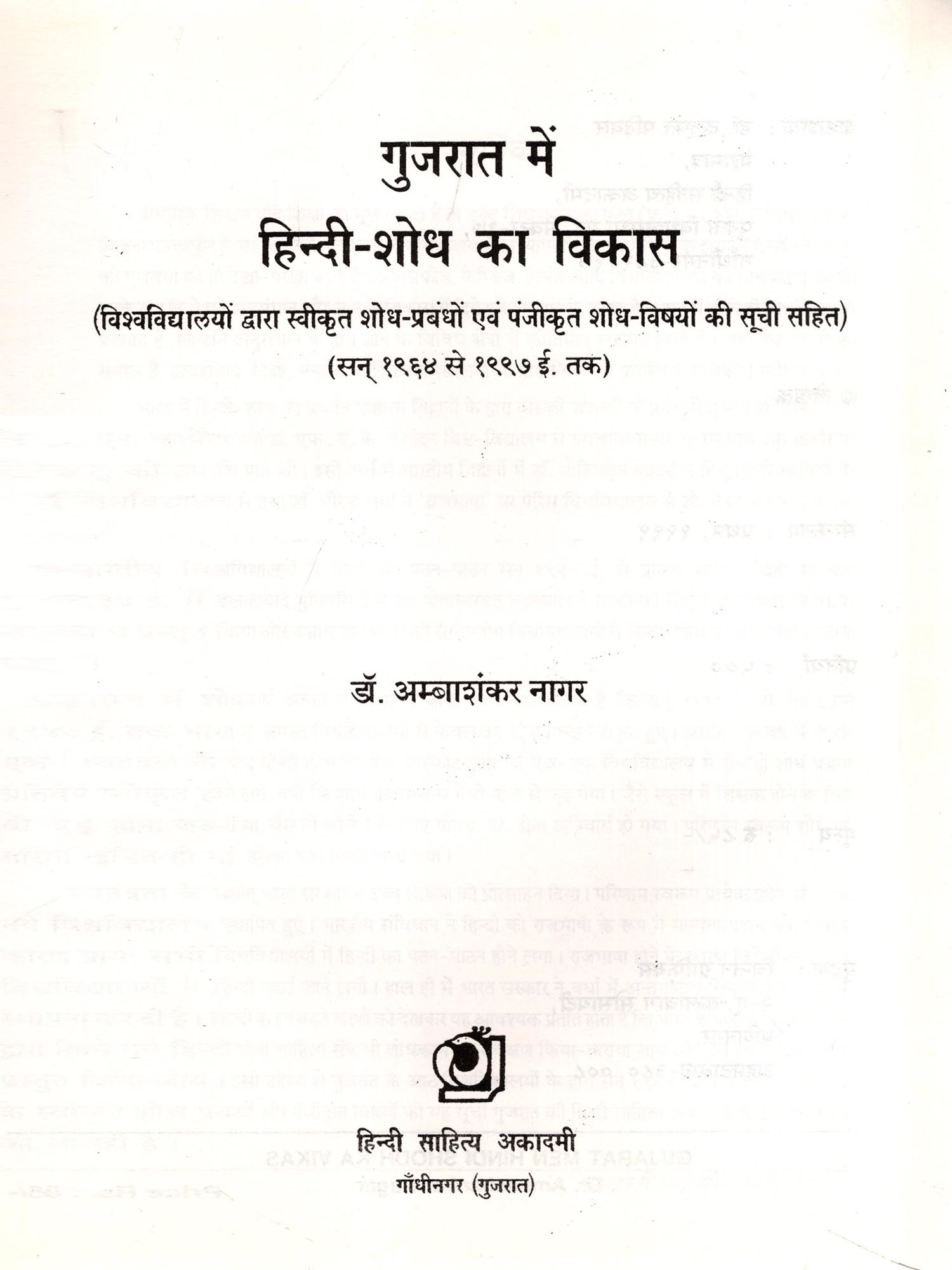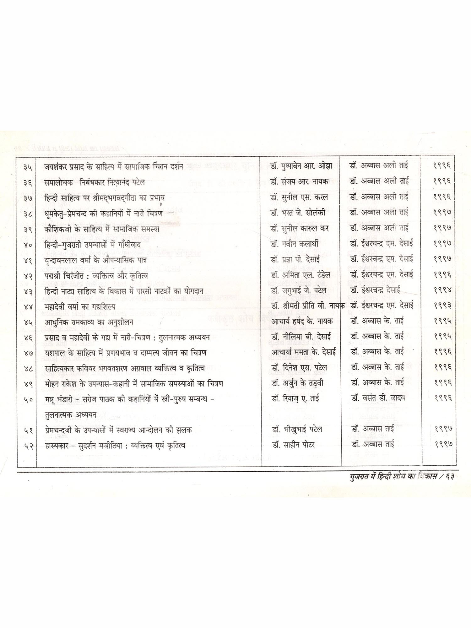 गुजरात में हिन्दी-शोध का विकास- Development of Hindi Research in Gujarat: List of Approved Dissertations and Registered Research Topics (from 1964 to 1997)
