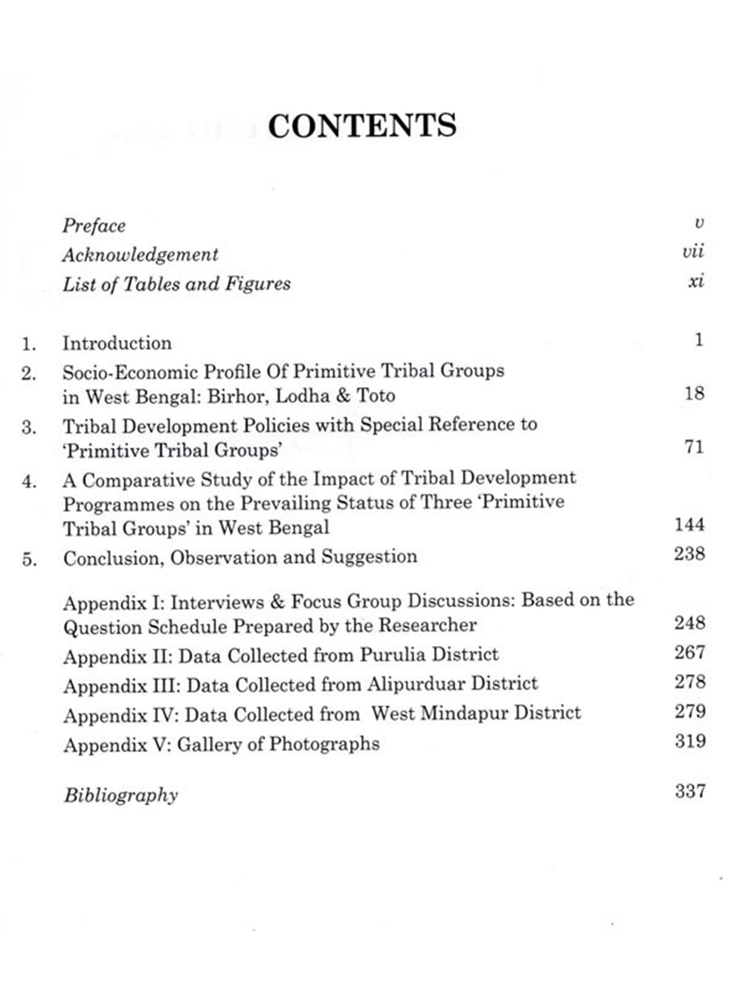 Keeping such macro perspectives in view, I have tried to deal with the micro contexts within which these three tribes are surviving. Undoubtedly, this book has focused on the evaluation of various developmental schemes to depict the actual condition of those tribes. Some alternative suggestions are also framed which are very much context specific and may accelerate the progress and success of the overall development of those primitive tribes.