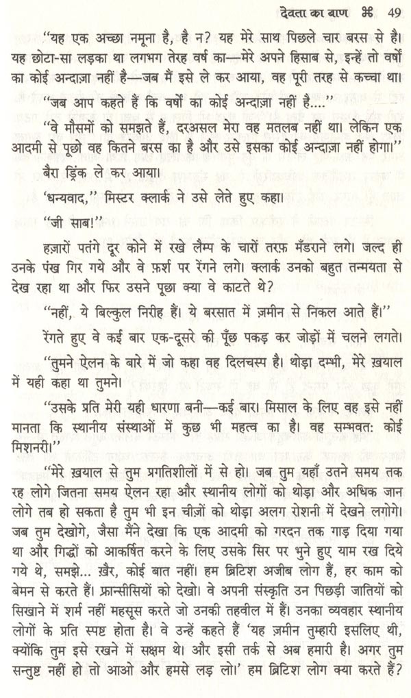 देवता का बाण के सिलसिले में यह विशेष गुण इस बात में निहित हो सकता है कि मुझे इसी उपन्यास को दोबारा पढ़ते पकड़ा जा सकता है। इस वजह से इसके शिल्प और गठन की कुछ कमज़ोरियाँ भी मेरी नज़र में आयीं जिन्हें मैं इस नये संस्करण के प्रकाशन के अवसर का फ़ायदा उठा कर दूर करने की कोशिश कर रहा हूँ।