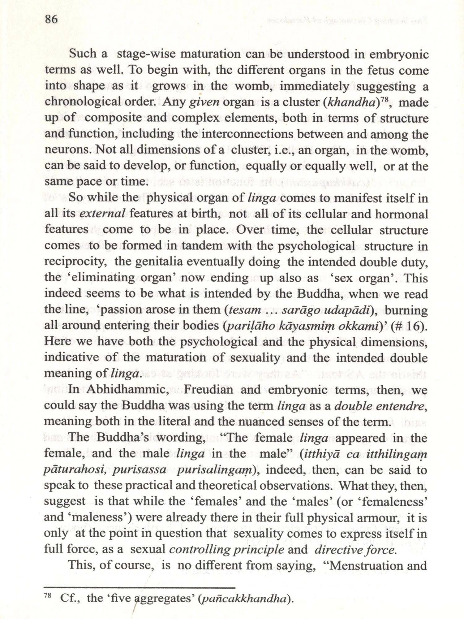 In his book, Suwanda H. J. Sugunasiri has provided a novel perspective on this ancient text. His central argument is that the Agganna Sutta is a genuine utterance of Gotama, and must be seriously regarded as a factual summary of his world-view. In this regard, he takes exception to Pali scholars who see in the Sutta a take-off on the pancatantra genre common to Gotama's cultural period (a fable-like story designed to make a point); or the Agganna Sutta as a fanciful description of evolution, caste and rulership (with "a good-humoured irony", as notes T.W.Rhys Davids ); or as a satire (Steven Collins), or as a parody of a earlier Vedic creation myth (Richard Gombrich). Rather, for Sugunasiri, the Agganna Sutta is as much a sincere scientific exhortation as it is a teaching on the ultimate primacy of following a dhamma or instruction based on the moral 'norms' of conduct associated with human society.
