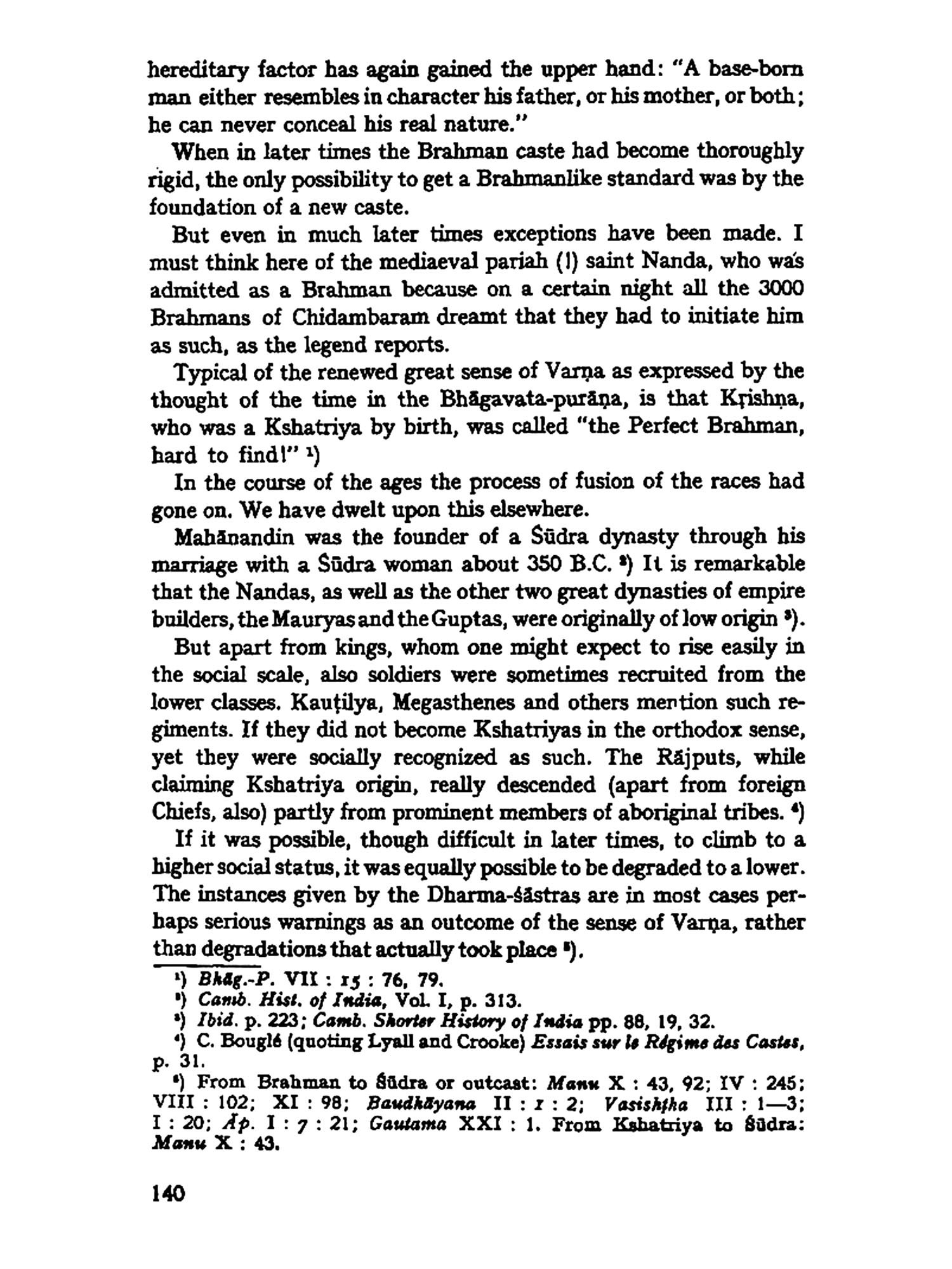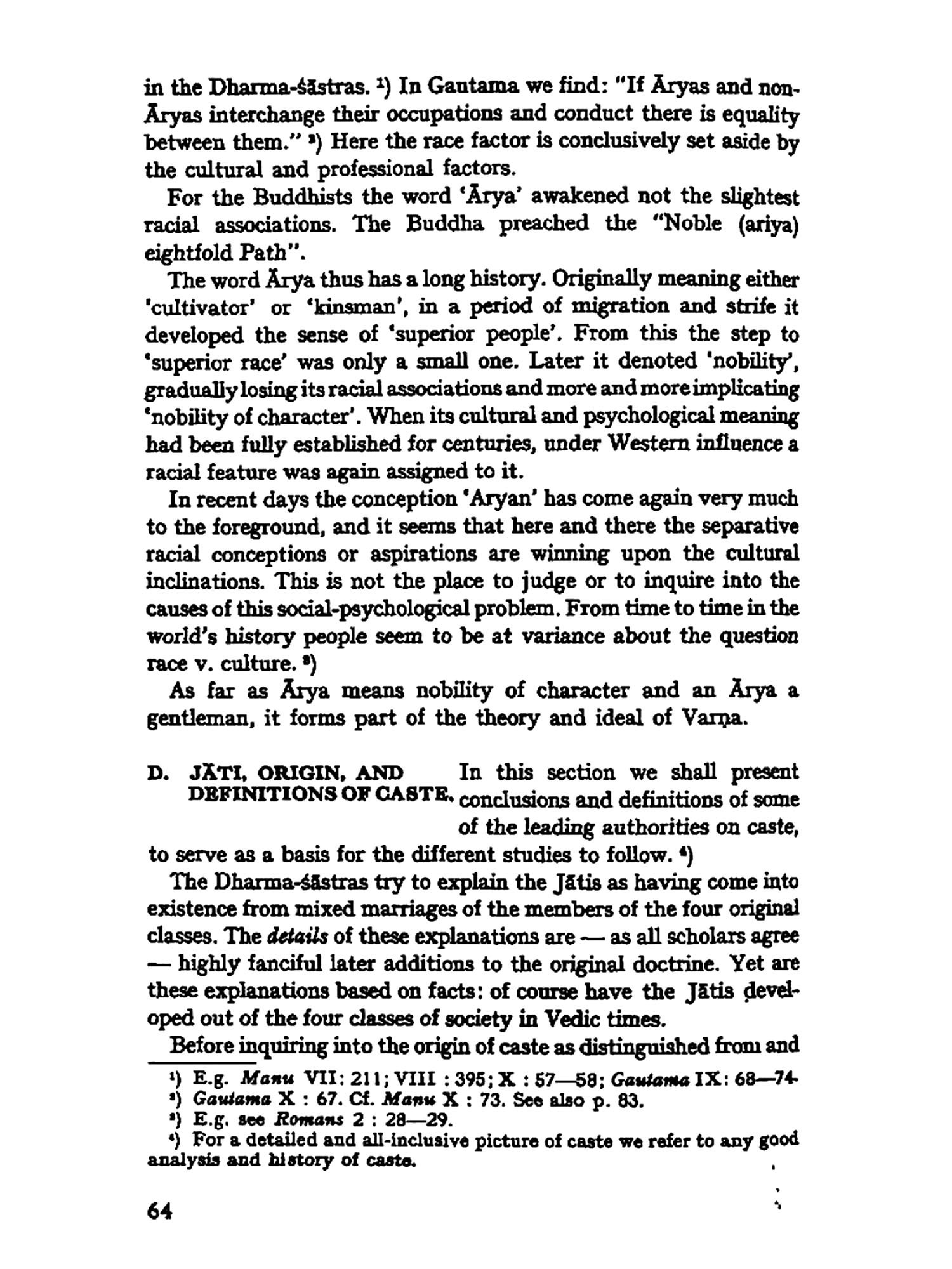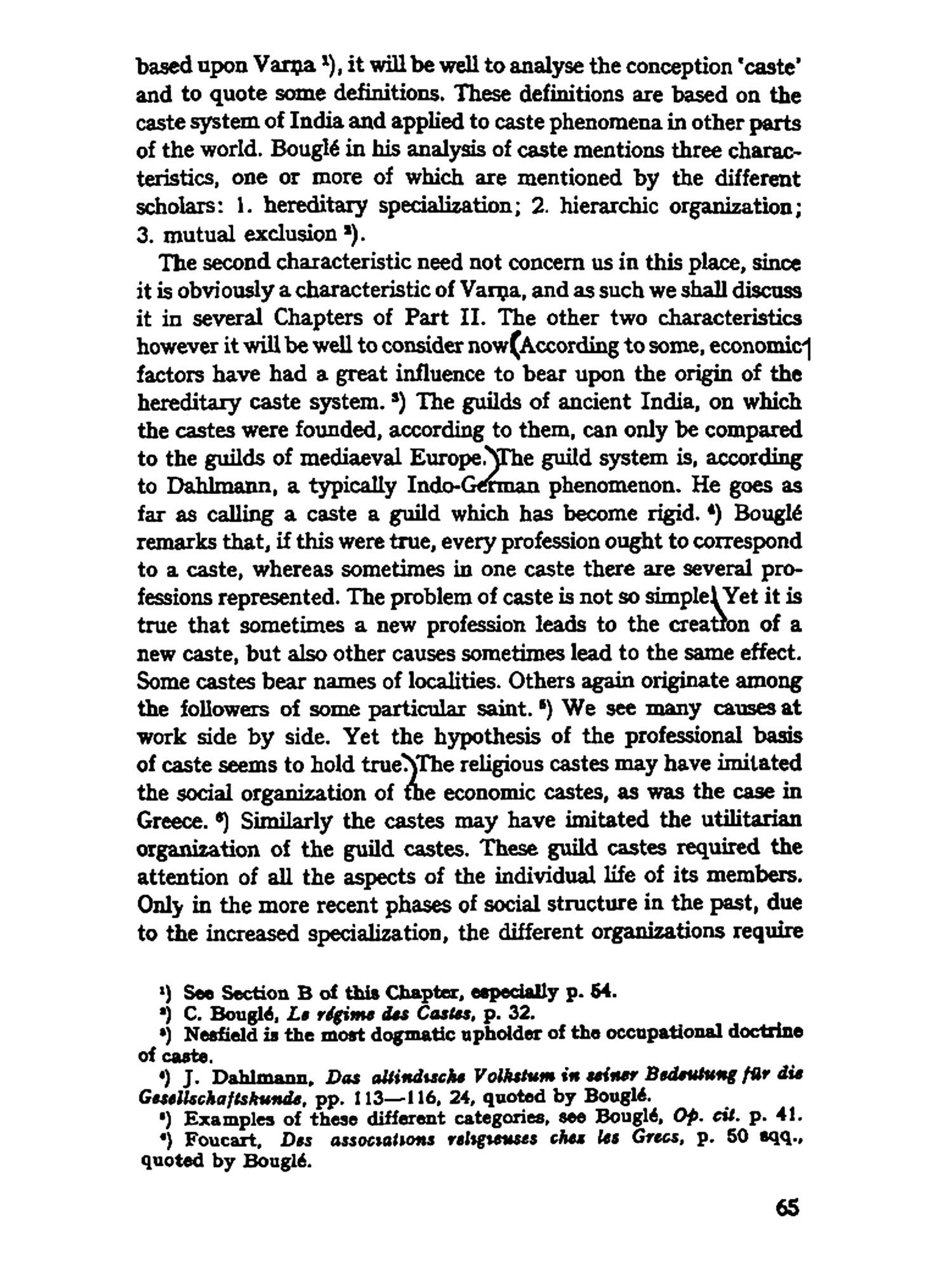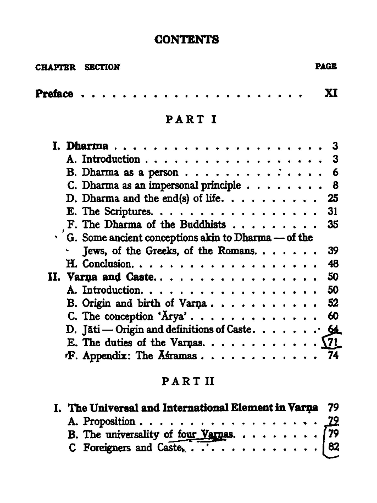In these pages we intend to inquire into the nature of Dharma fundamental motive force in the life of man as a social being the in connection with a comparative study of the theory and the ideal of Varna ('natural class') and the phenomena of caste in India and incidentally of class in the West. Professor Kern emphasized that the great point is to distinguish between the natural classes or orders, and castes, which cannot have arisen naturally, but are artificial" "). This special line of study however has been rather neglected3).