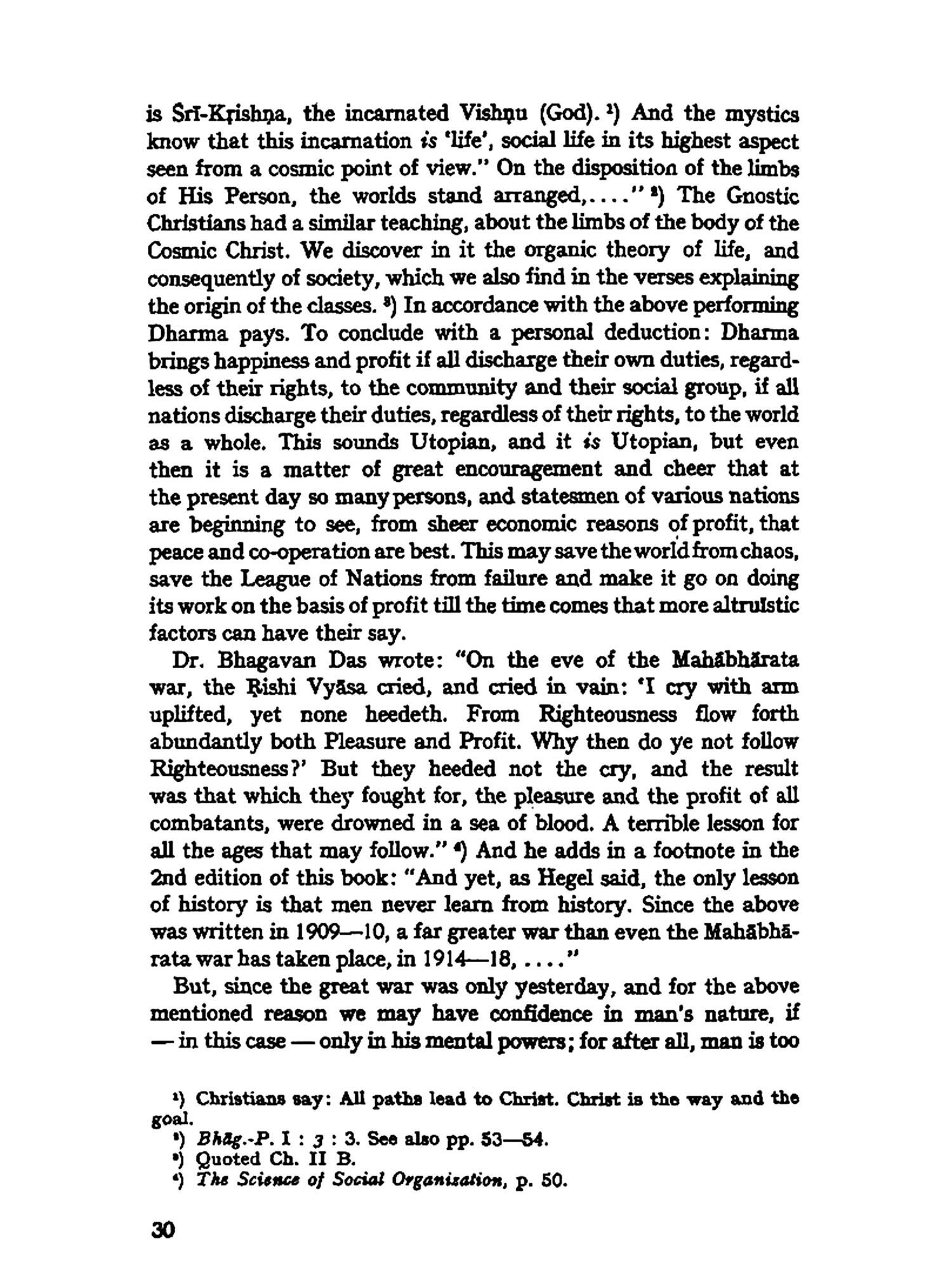 As the Right Hon. Ramsay Macdonald expressed it: „If one were to turn to any great philosophy or any great system of thought upon which could be built up a harmony between races, a harmony between conflicting thoughts, where could one go to find it more readily than to the great philosophies of India itself? Those philosophies where brotherhood is inculcated, where peace and harmony and co-operation are enjoined; those philosophies which look at the world not in a mere abstract way but as something essentially composed of differences, and yet essentially calling for a harmony of differences rather than a mere uniformity of thought or of action" 1). The present book will continually provide illustrations of this.