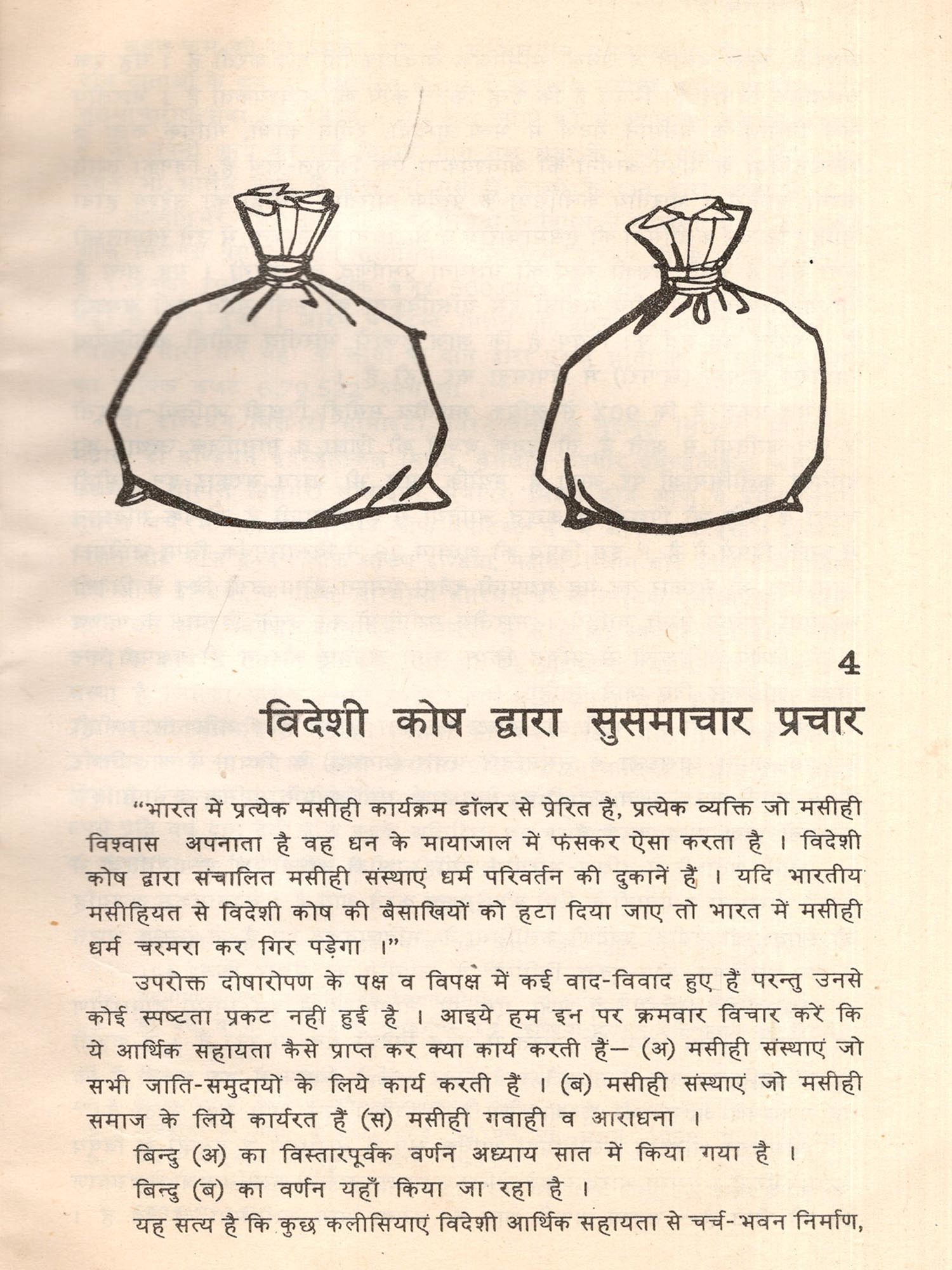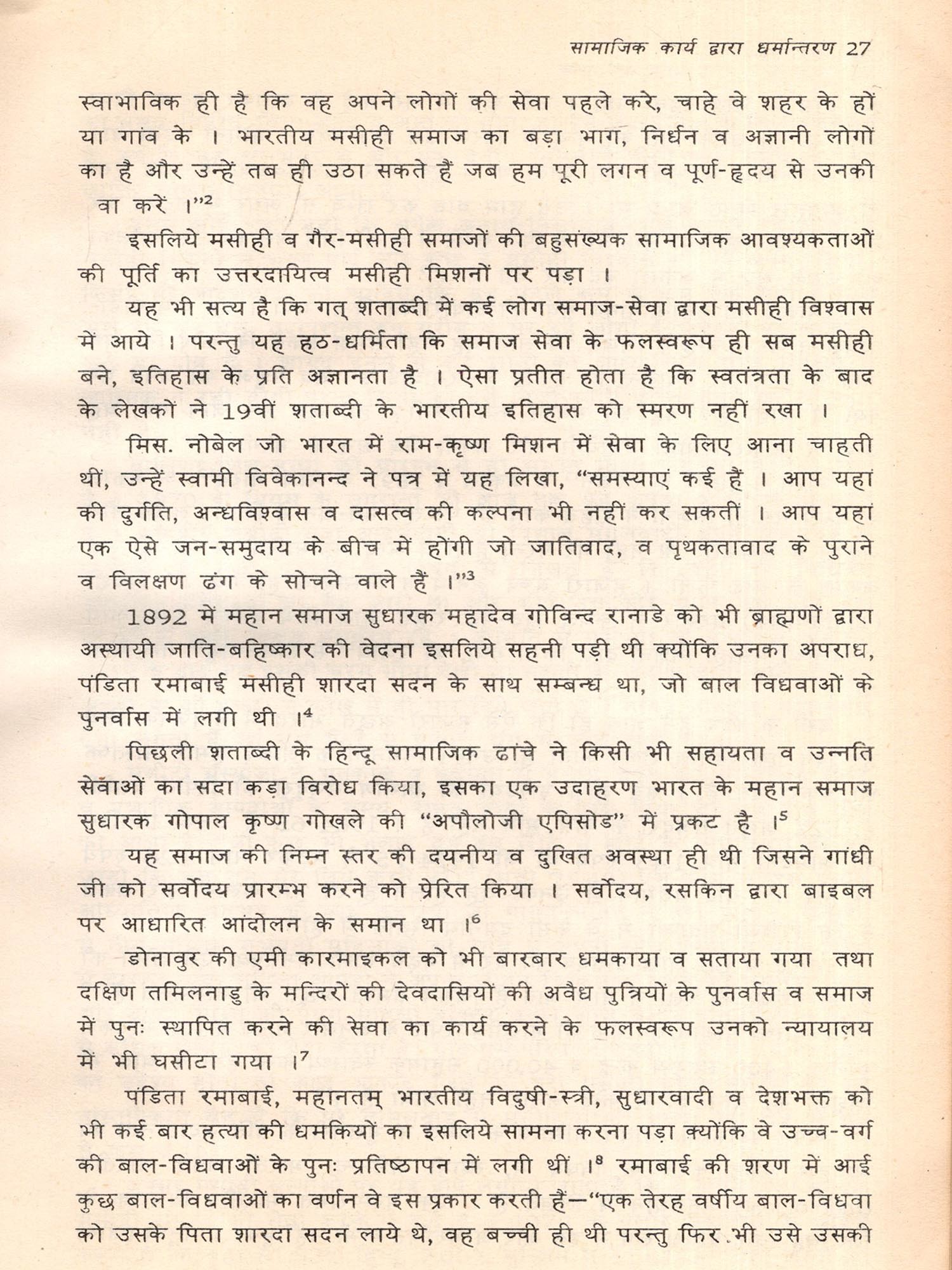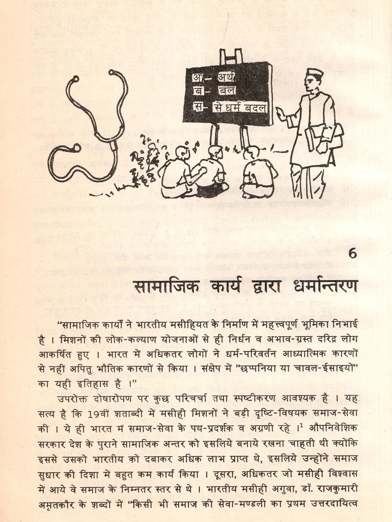 वर्तमान लेखक, सुन्दर राज यही आशा रखते हैं कि प्रत्येक भारतीय यह समझ सके कि सभी धर्मों के मिशनरीय लक्ष्य रहे हैं जिसके अन्तर्गत धर्मान्तरण भी आता है जो आज भी चले आ रहे हैं। अतः एकमात्र मसीही मिशनरी सेवाओं की निन्दा करने का कोई भी प्रयास अनुचित है। इसी के साथ-साथ यह पुस्तक बड़े प्रभावपूर्ण ढंग से इस मत का भी विरोध करती है कि मसीहियत एक अपनीवेशी धर्म है। लेखक युक्तियुक्त ढंग से यह प्रमाणित करता है कि इसके पूर्व कि भारत में एक भी गोरा (विदेशी) दिखाई देता, यहाँ लगभग दस लाख मसीही थे; और यही प्रतिशत मसीहियों का उस समय भी था जब अंग्रेजों ने भारत छोड़ा। इस प्रकार मसीहियत भारत में उतनी ही प्राचीन, पूर्वी व स्वदेशी है जितने कि यहाँ के अन्य मत है।
