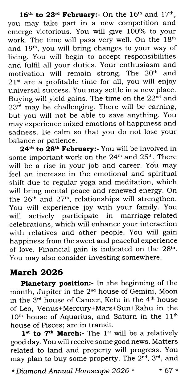 Diamond Annual Horoscope 2026 (Including Last 4 Months of 2025)